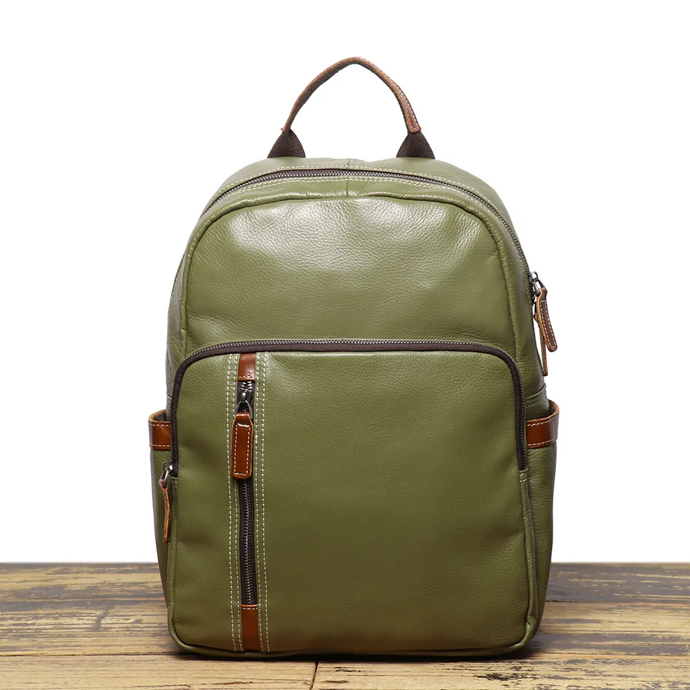 Leather Backpack Cowhide Travel Contrast Color College Soft Leather Schoolbag