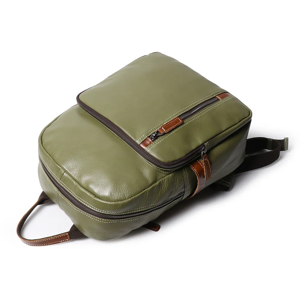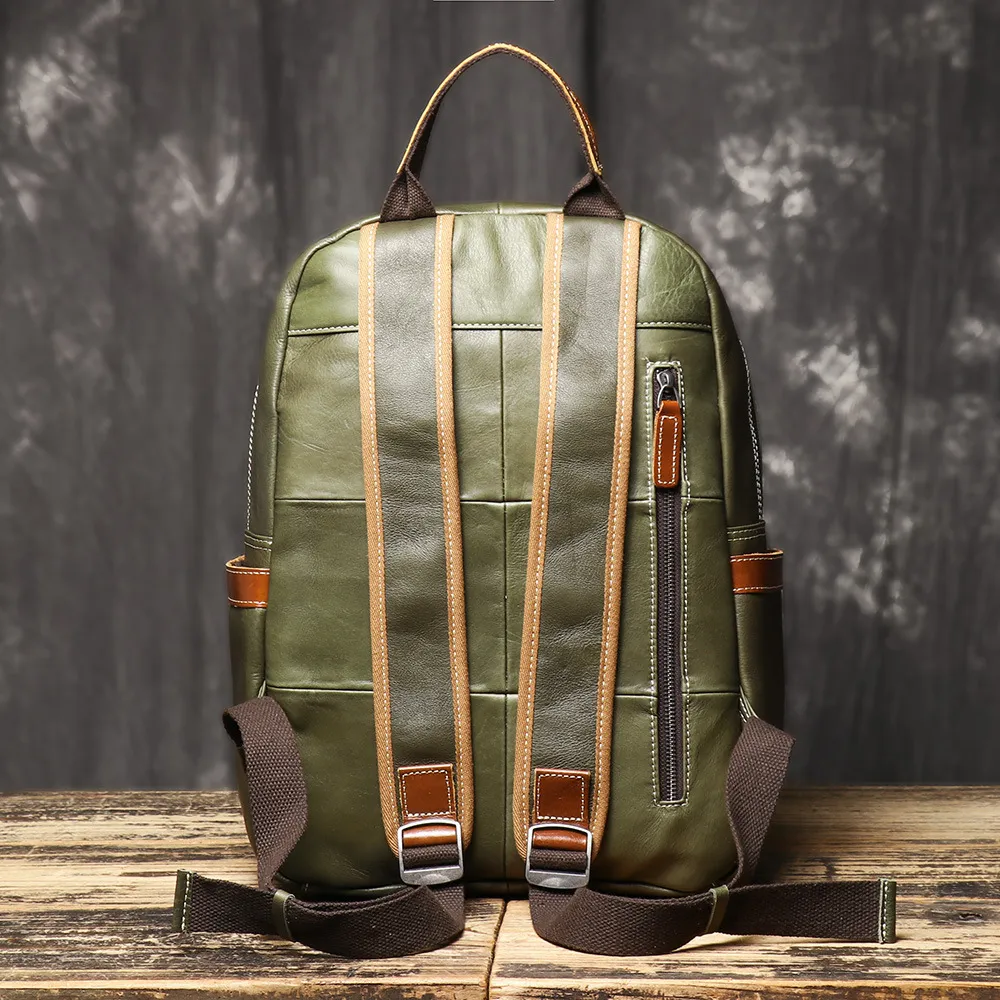 premium cowhide leather, this backpack offers a luxurious feel while ensuring durability for everyday use. Its unique contrast color design