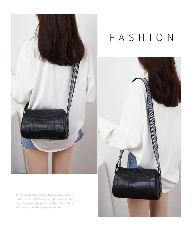 Leather Shoulder Wide Strap Casual Messenger Bag