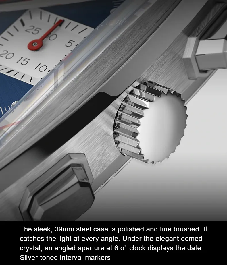 The combination of a leather strap and sporty dial makes this watch suitable for various occasions, from outdoor activities to professional meetings.
