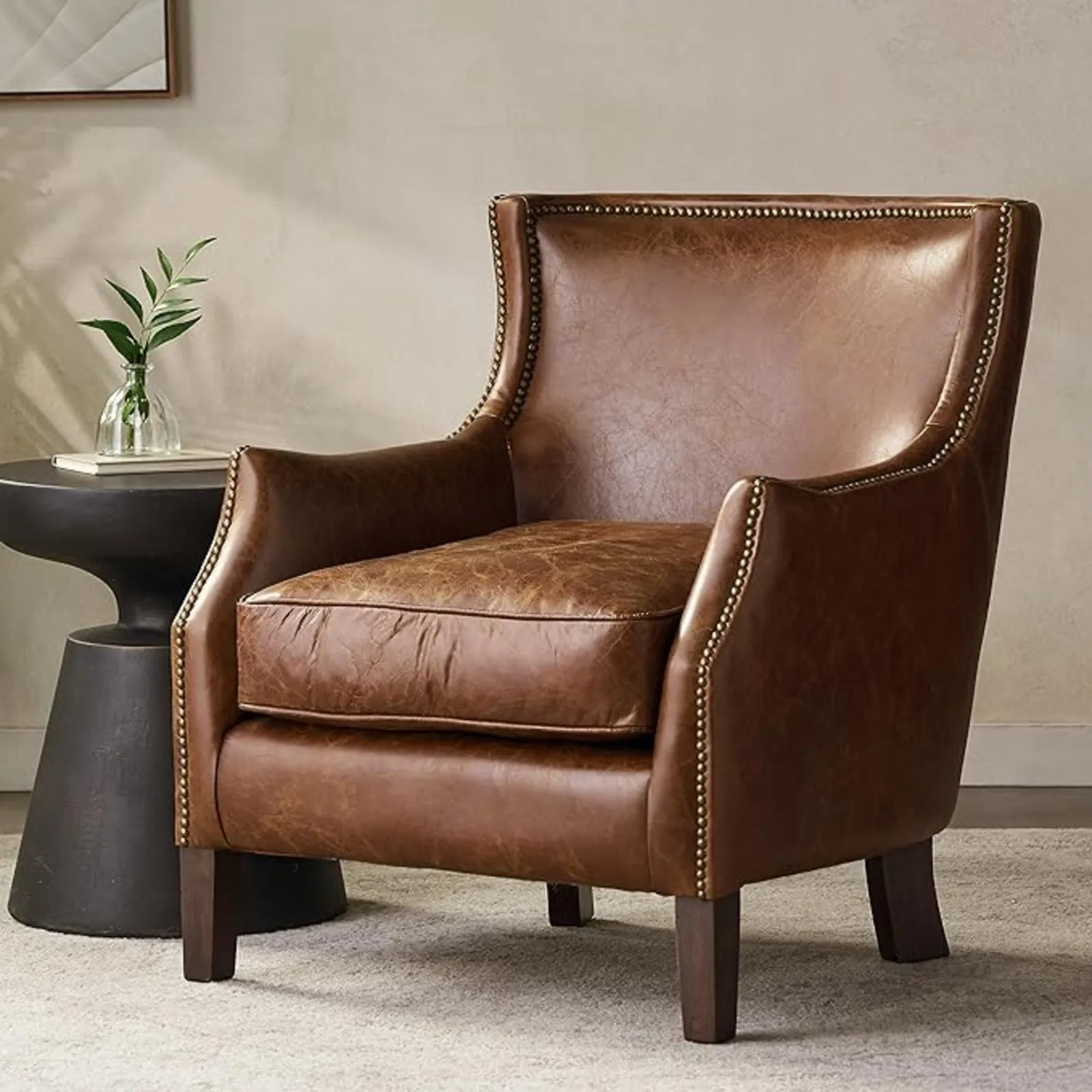The classic wingback style and luxurious leather upholstery bring a sophisticated, timeless charm to any room, making it a standout piece in your living room, study, or office.