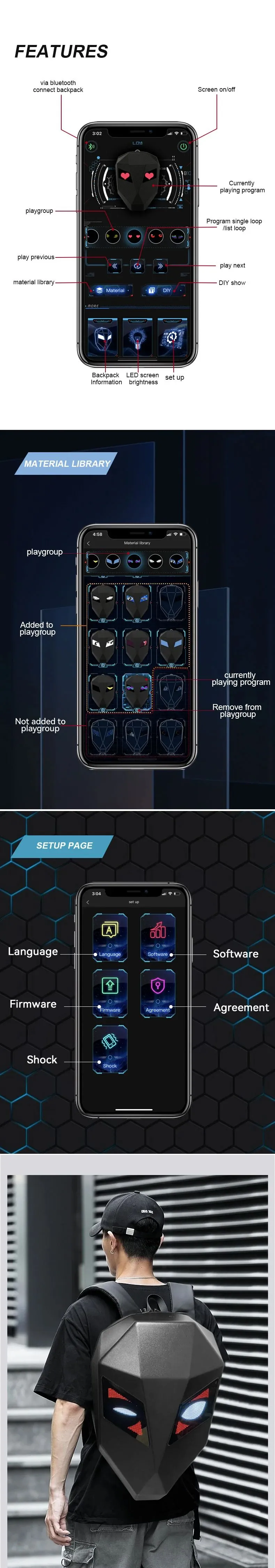 【Appearance Material】LED smart knight backpack appearance purchased from