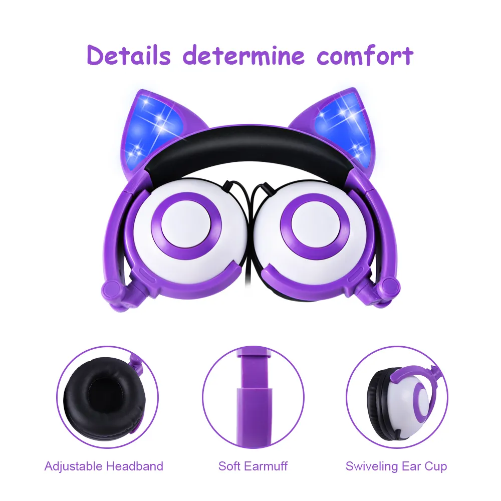 LED Flashing Cat Ears: The standout feature of these headphones is the cat ear design, complete with flashing LED lights.