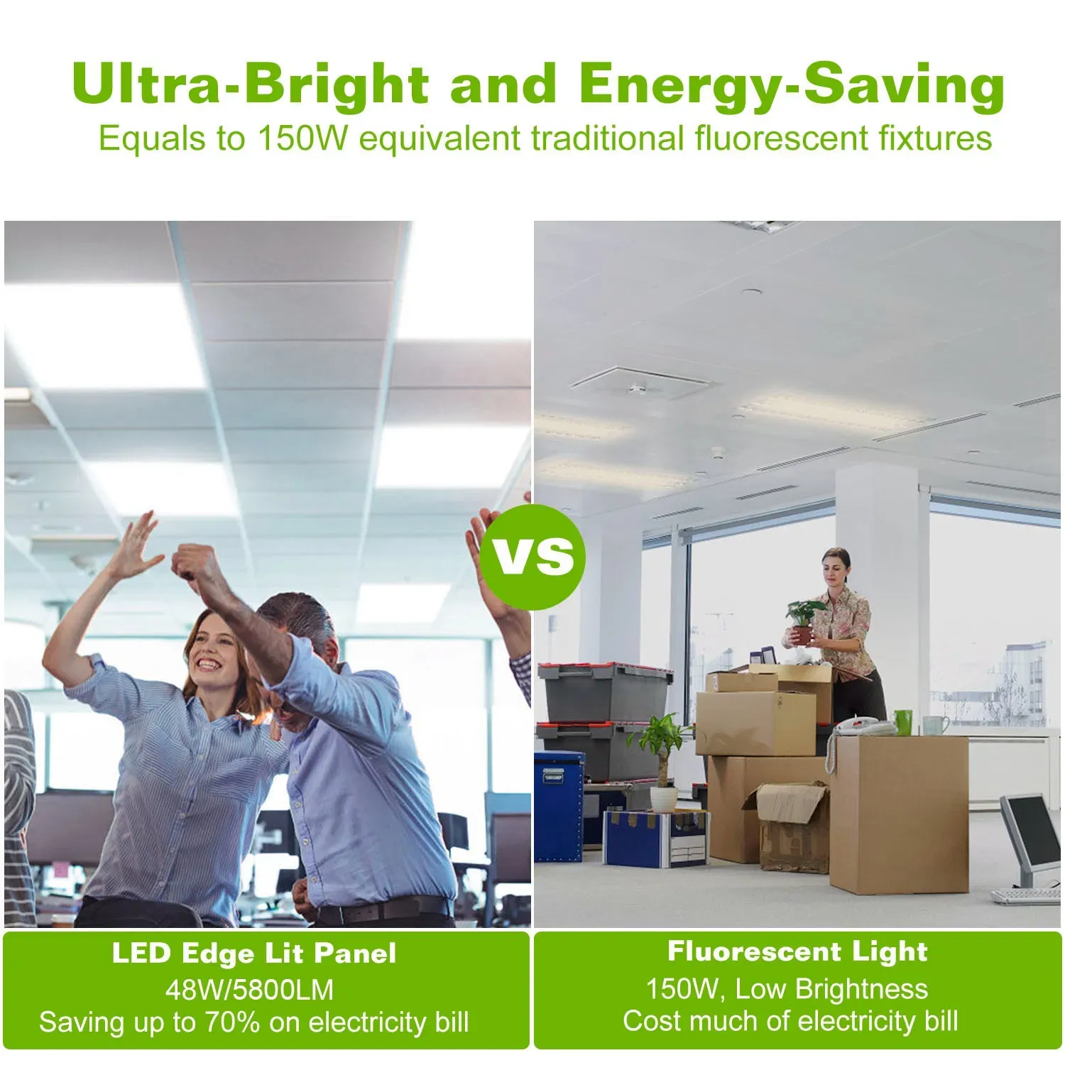 Advanced diffuser panels ensure even light distribution, reducing harsh shadows and visual fatigue in work or living environments.