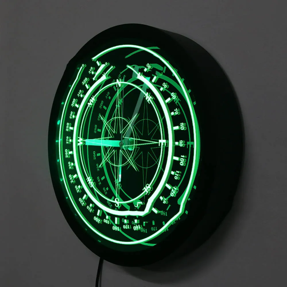 LED Luminous Wall Clock Black Wall Clock Nautical Compass Backlit Rose Compass Home Decoration Clock Wall Clock
