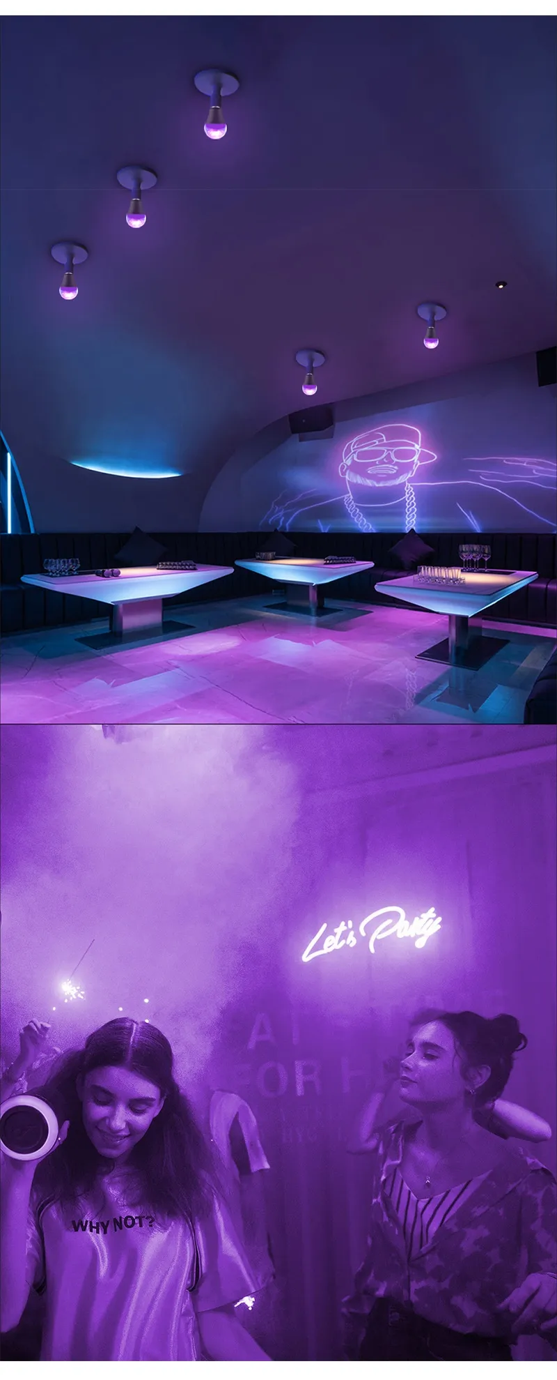 Suitable for bedrooms, lounges, gaming areas, display lighting, outdoor covered spaces, and restaurants — wherever dramatic lighting is