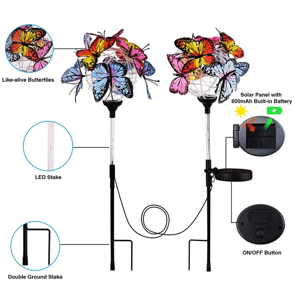 LED Solar Light Luminous Butterfly Ball Waterproof Outdoor Garden Lawn Stakes Lamps Yard Art For Home Courtyard Decoration