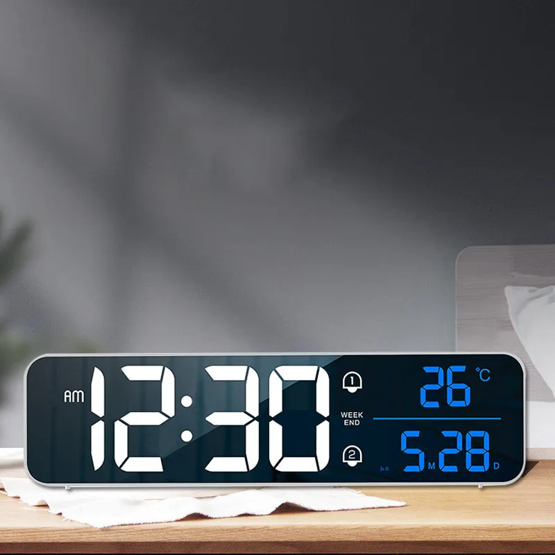 LED Wall Clock Electronic Digital Music Alarm Clock Office Smart Square Clock