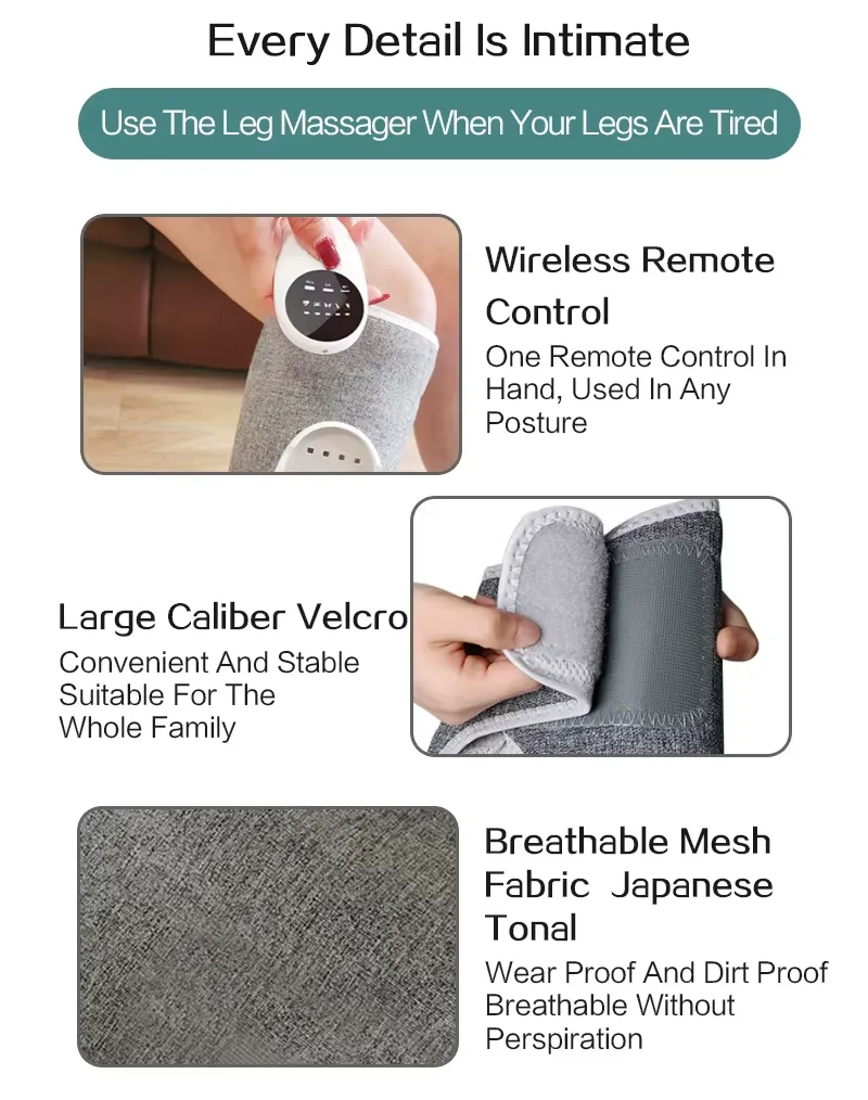 Ergonomic Design: Designed to comfortably wrap around your legs, ensuring that the massage is targeted and effective while