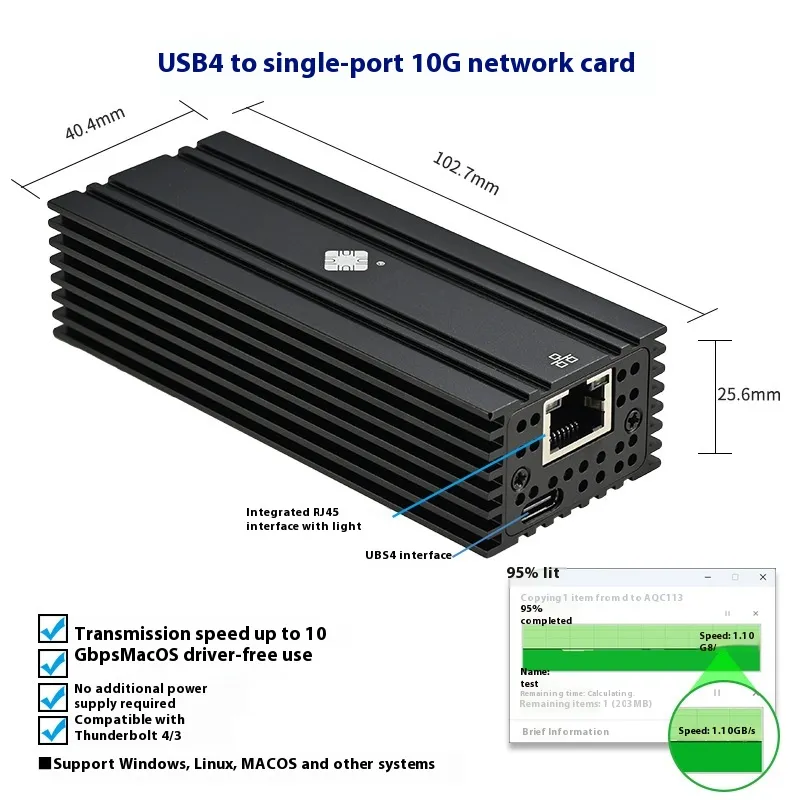 Leyu USB4 NIC 10G: Compatible with Lightning 10 Gigabit Electrical Port