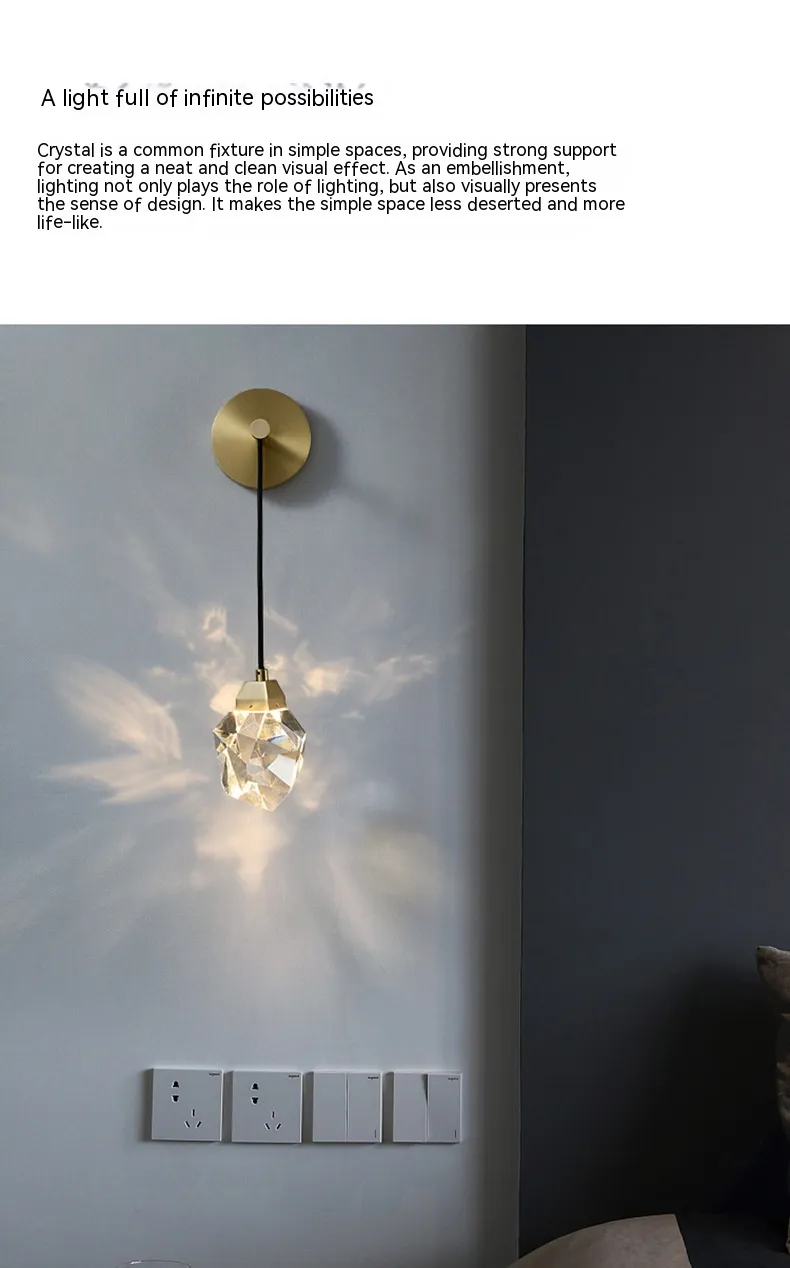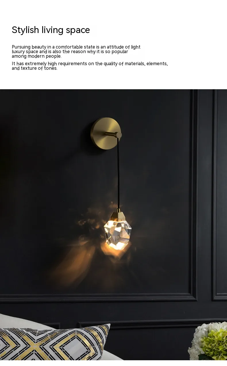 Choosing the Light Luxury Crystal Modern Living Room Background Copper Wall Lamp means you’re opting for a lighting solution that adds both beauty and functionality. Its combination of durability, modern design, and energy efficiency makes it a standout addition to any room. Not only does it provide ample light for daily activities, but it also serves as a statement piece, enhancing the overall aesthetic of your home. This lamp is a must-have for anyone who values both style and substance in their home lighting choices.