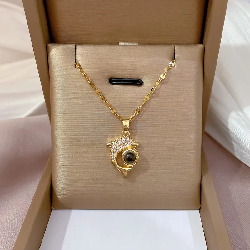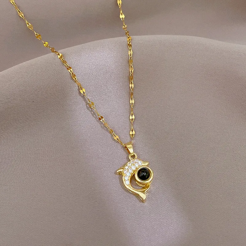 Light Luxury Dolphin Projection Stone Necklace