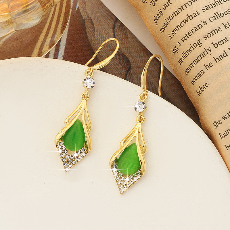 Light Luxury Opal Rhombus Ear Hook Elegant High-end Sense