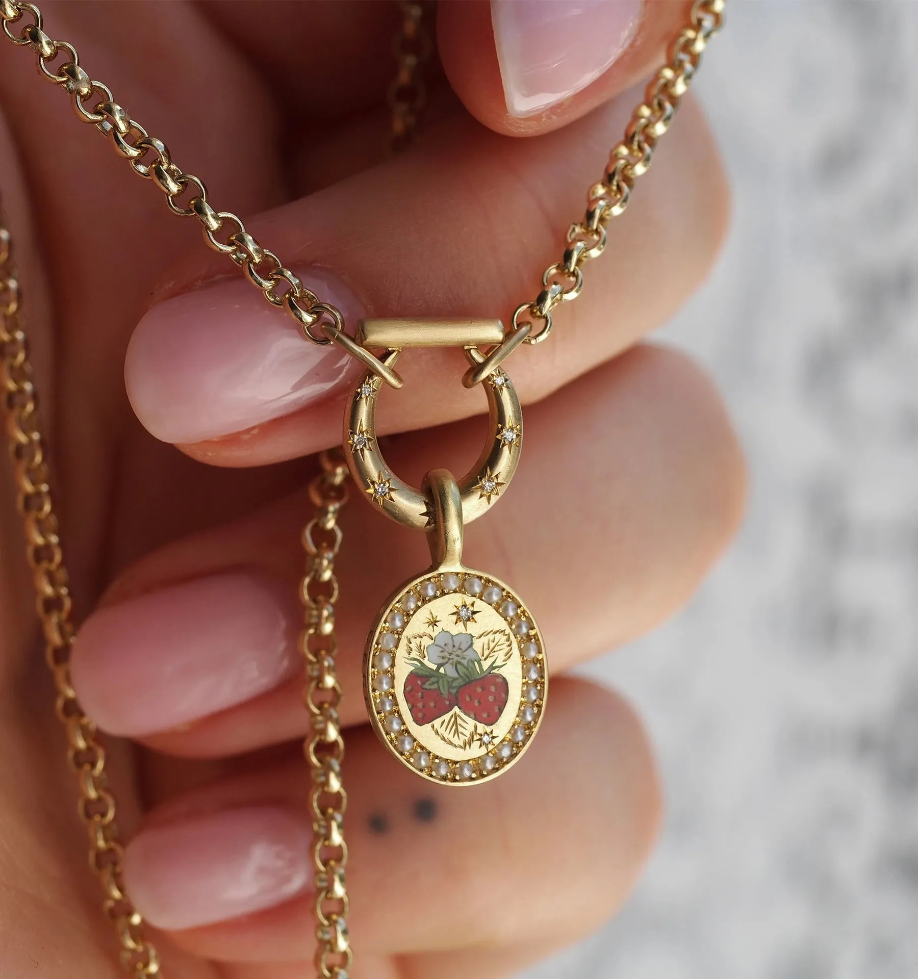 - Playful Design: The strawberry and pearl combination adds a fun, fresh twist to a classic design, making it unique and eye-catching.