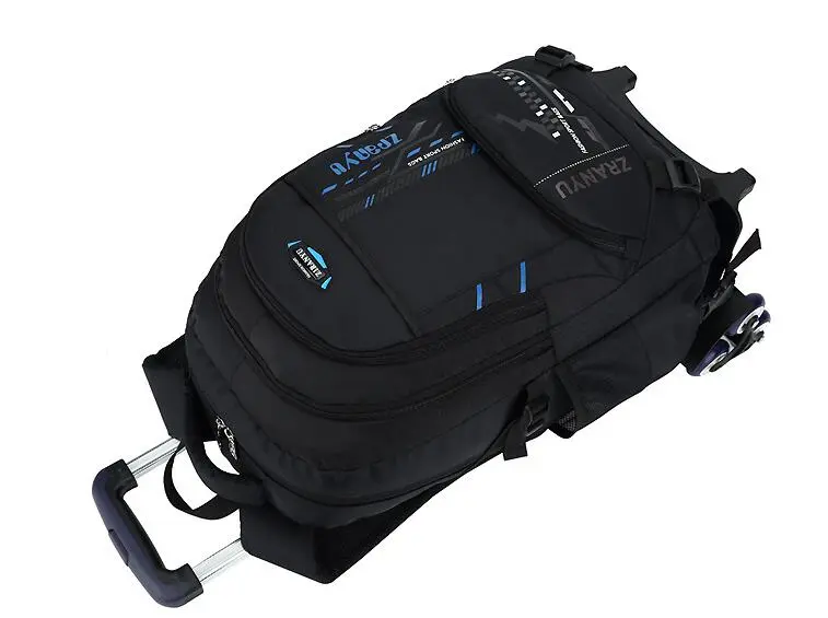 - Use the wheels to pull the bag easily or wear it on the back using padded straps.
