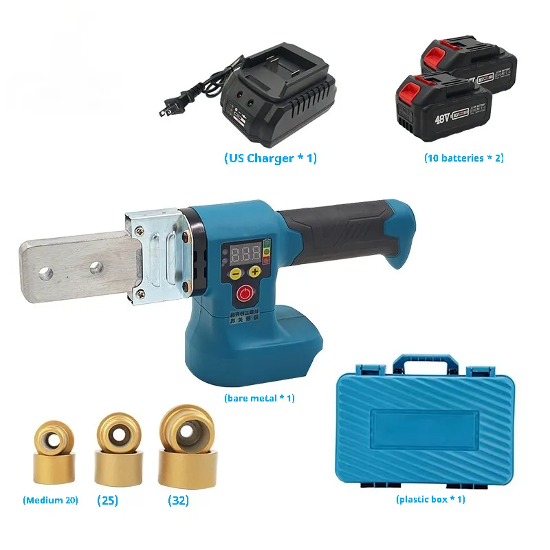 1 * welding pipe machine; 2 * battery; 1 * charger; 3 * die head (20/25/32); 1 * English manual;