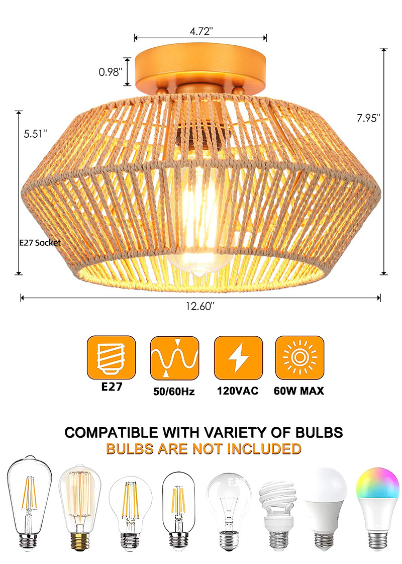 Durable Hemp Material: Hemp is known for its strength and durability. The hemp rope lamp is designed to