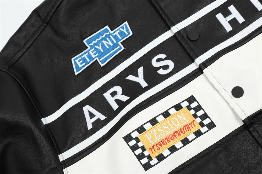 Locomotive Style Racing Suit Leather Coat Men