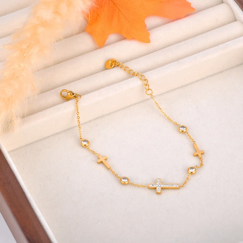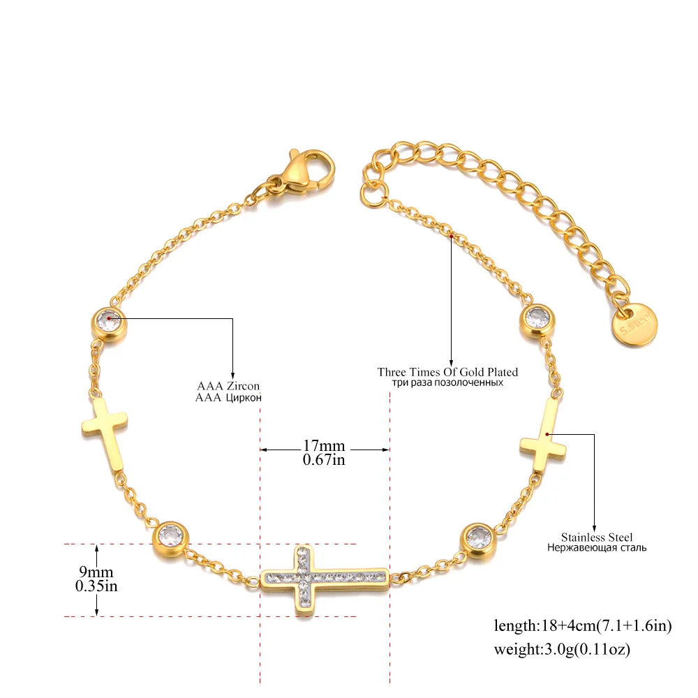 This bracelet is a beautiful addition to any jewelry collection, with a design that works for both formal and casual settings. The 316L stainless steel ensures durability, while the 18K gold-plated finish adds a touch of elegance. The cross charm makes it not only a fashion statement but also a symbol of faith and spirituality.