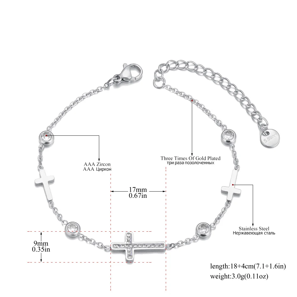 Lokaer 316L Stainless Steel Cubic Zirconia Cross Charm Bracelet for Women