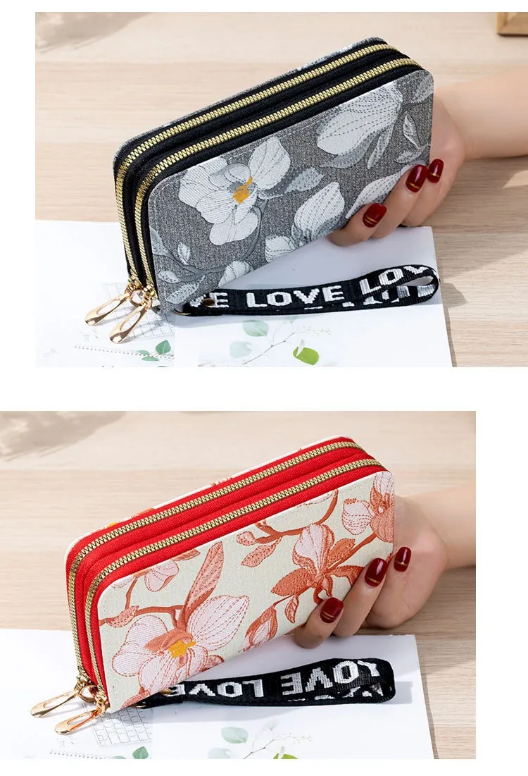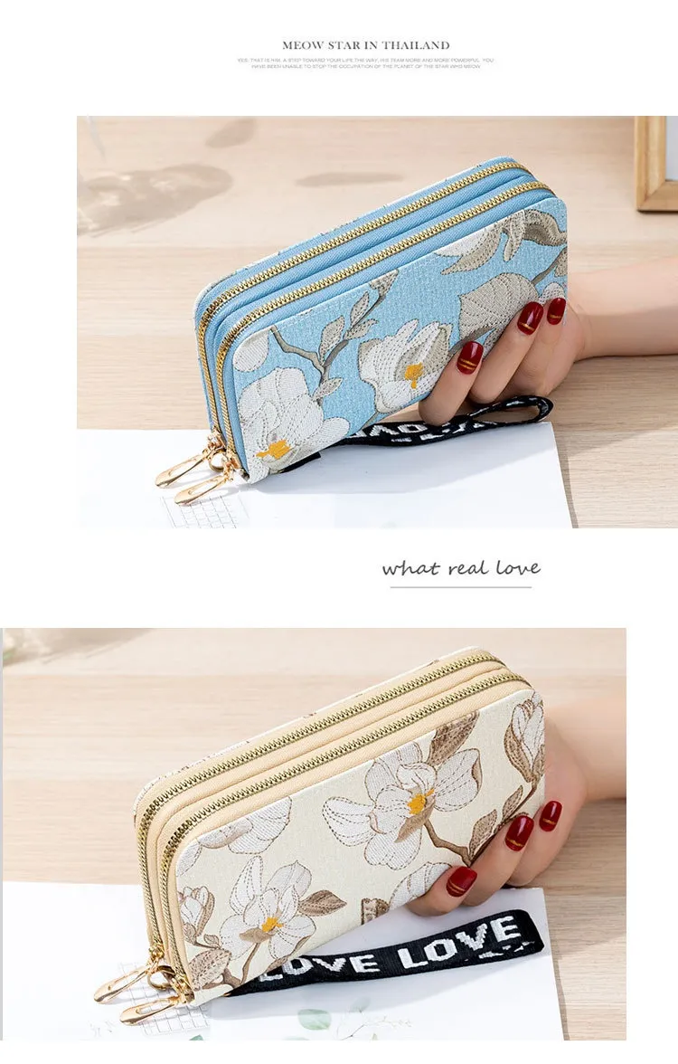 Long Double Zipper Flower Large-capacity Wallet
