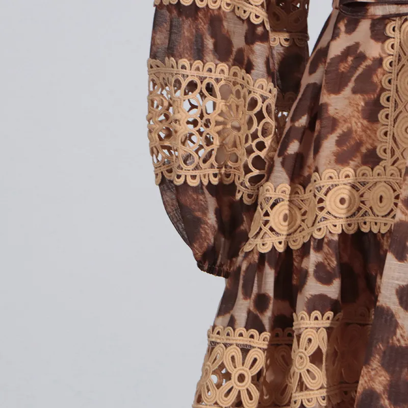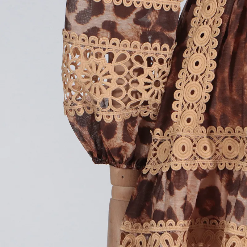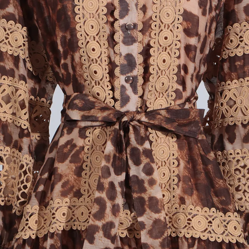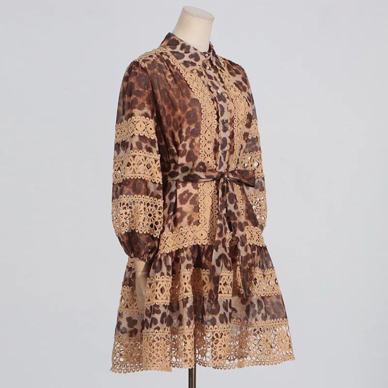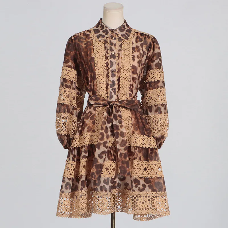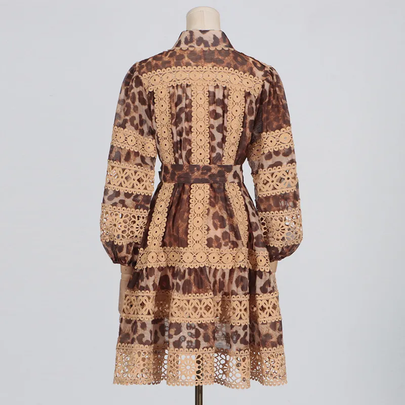 Long Sleeve Hollow Leopard Print Dress Women