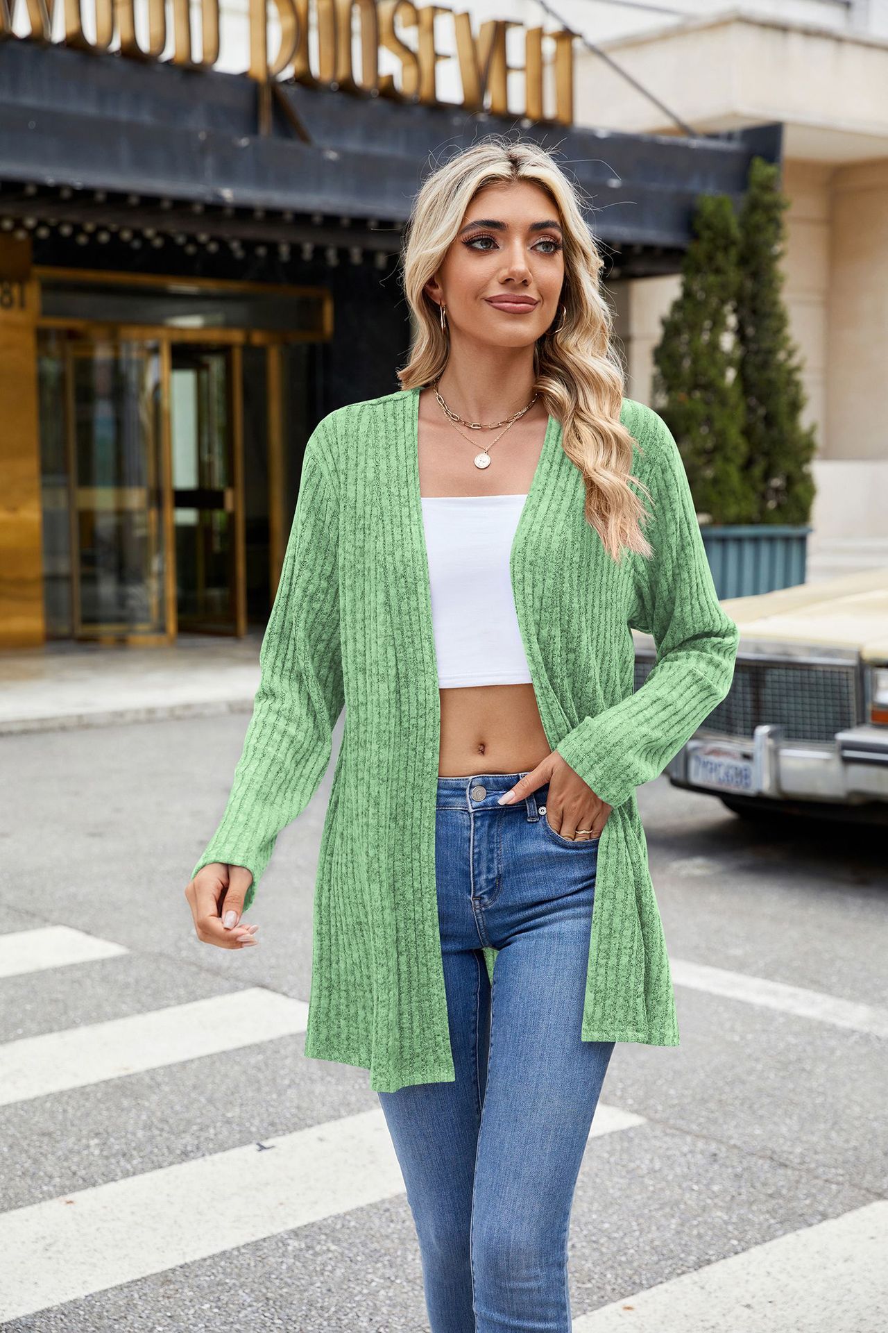 Long Sleeve Loose Sunken Stripe Sanding Underwear Sweater