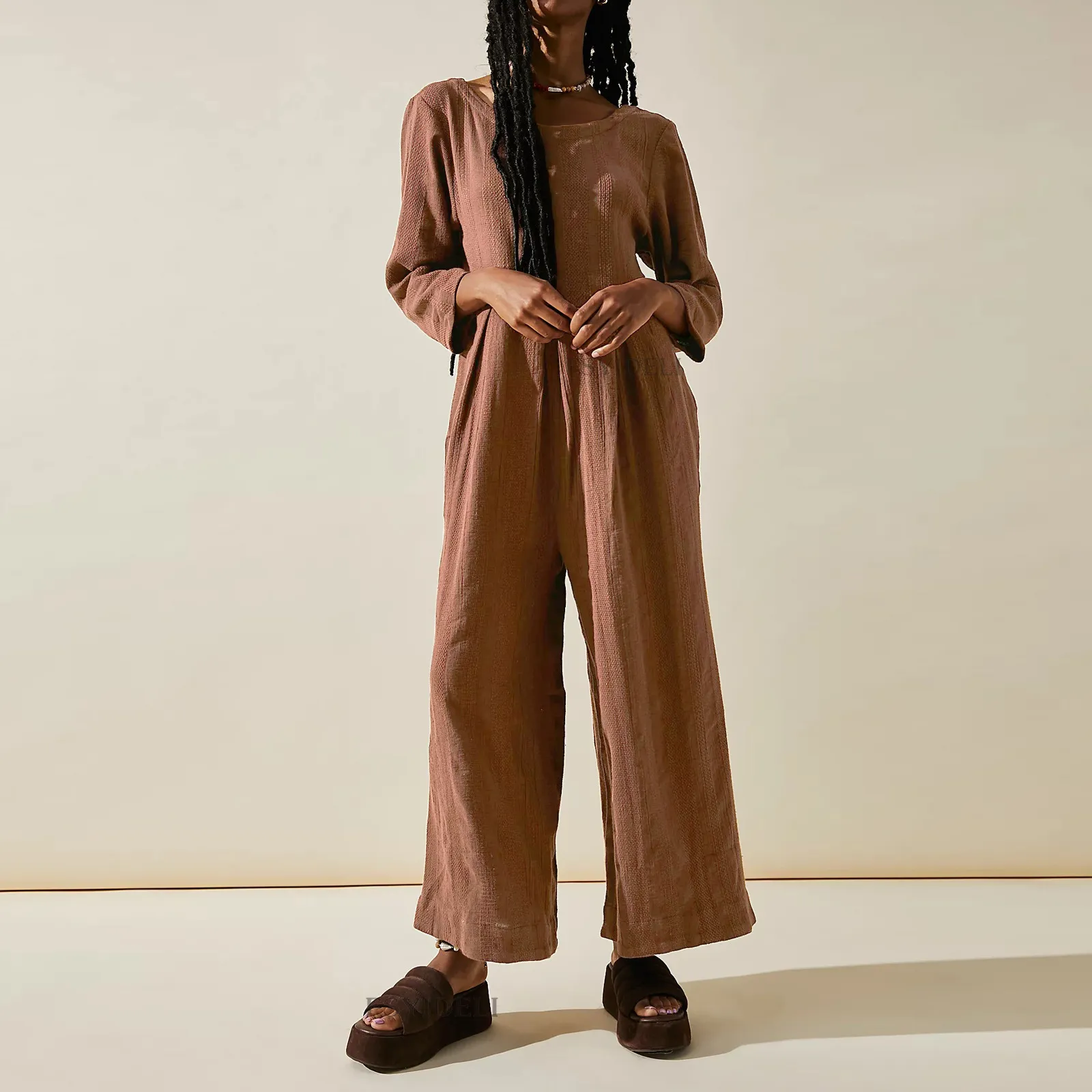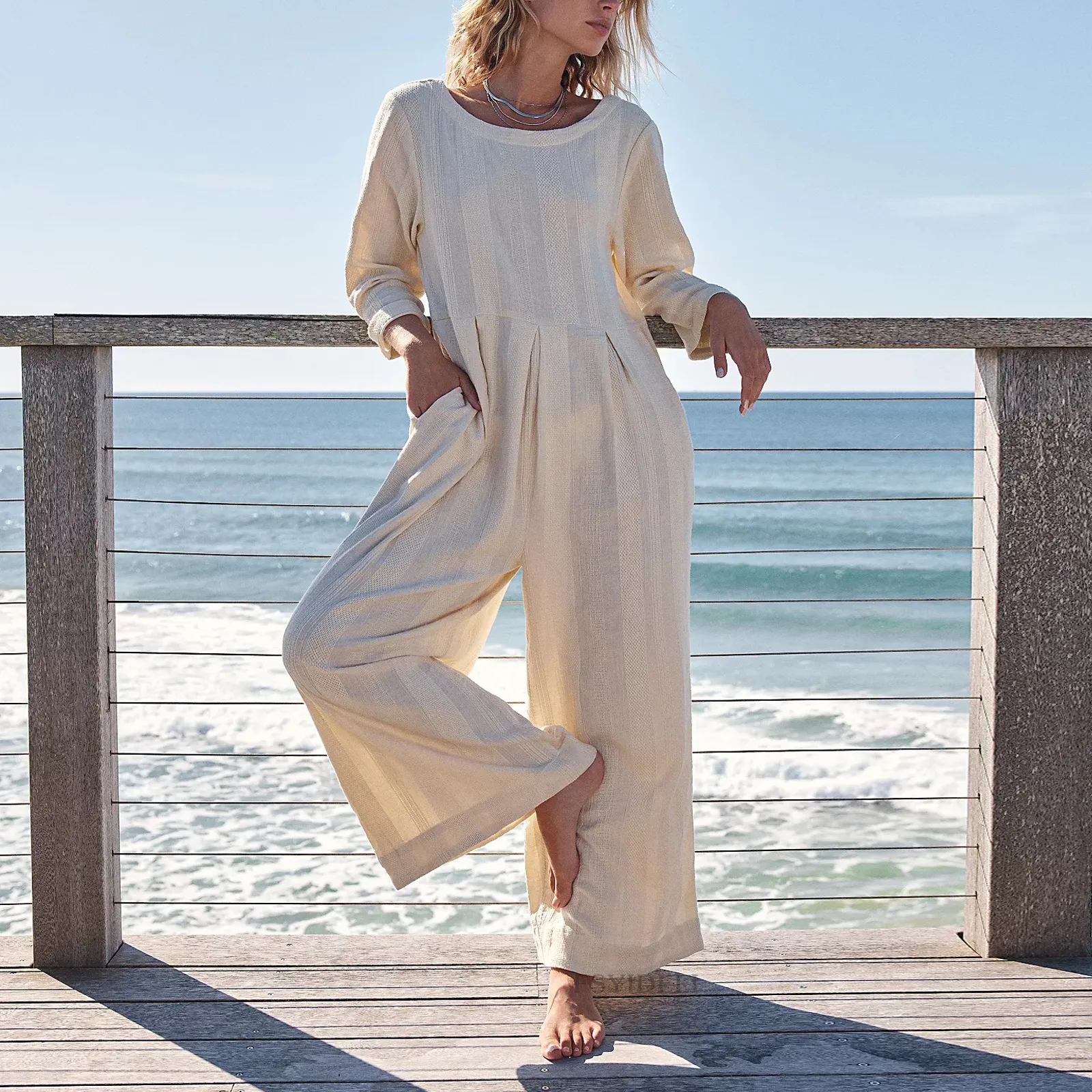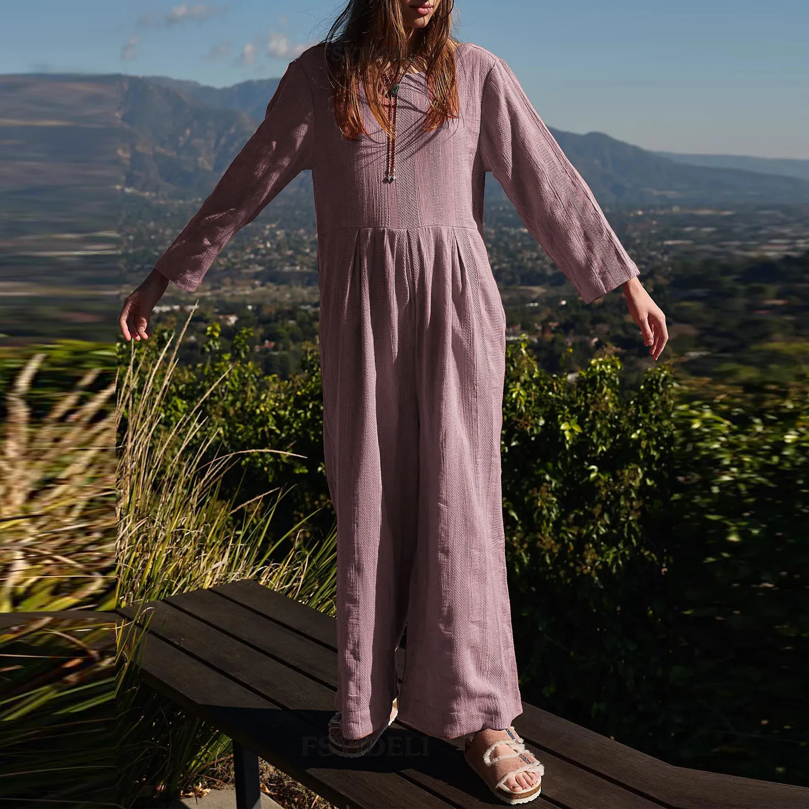 Long Sleeve One-piece Loose-fitting Wide-leg Trousers