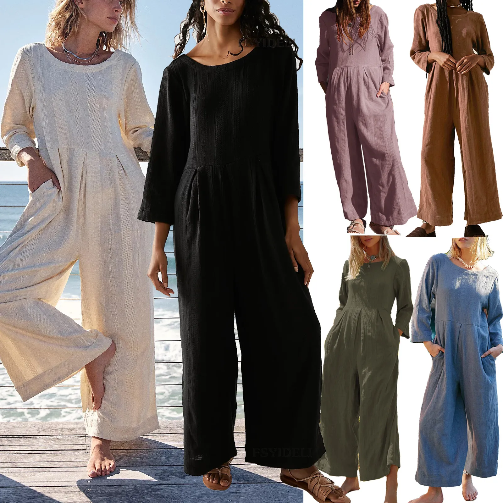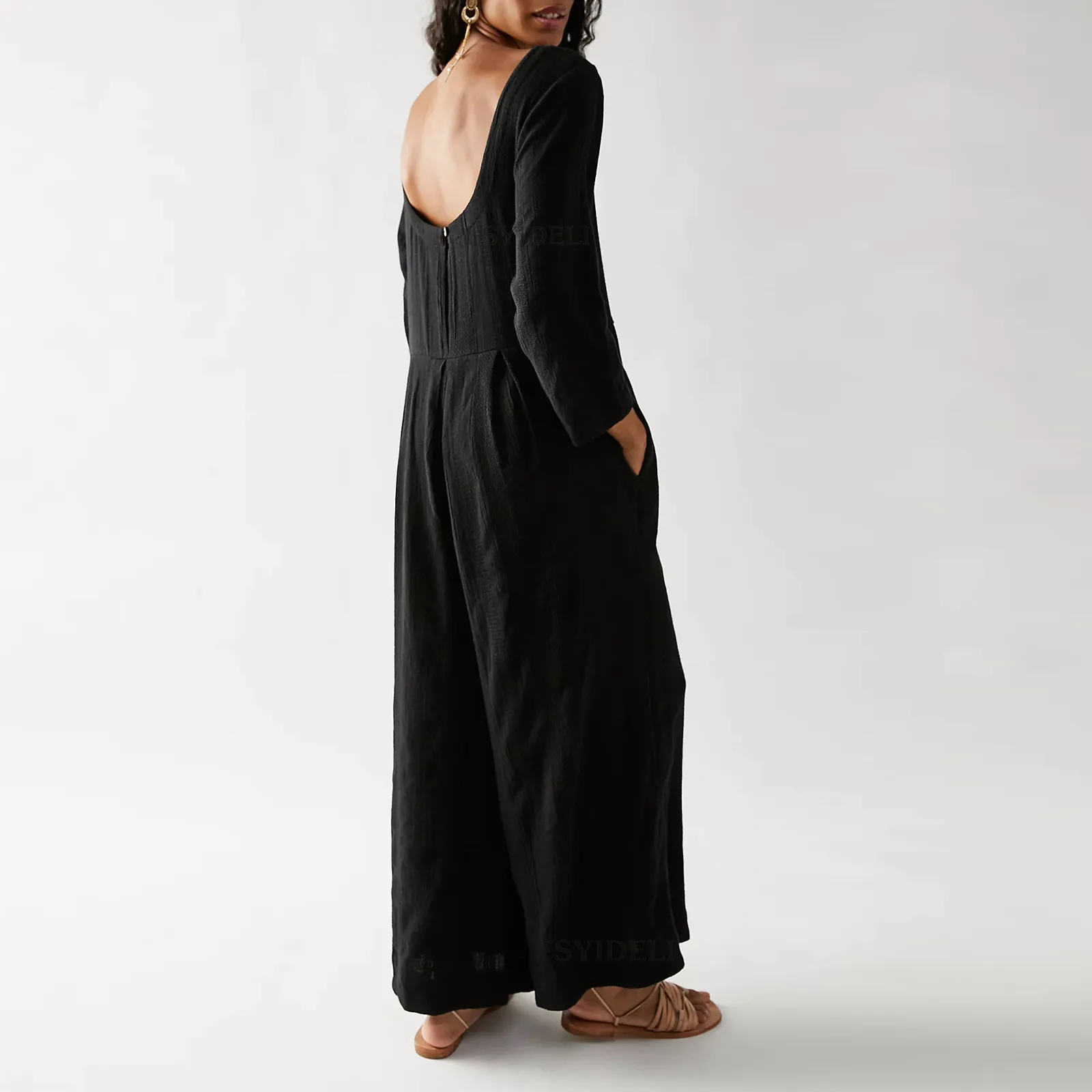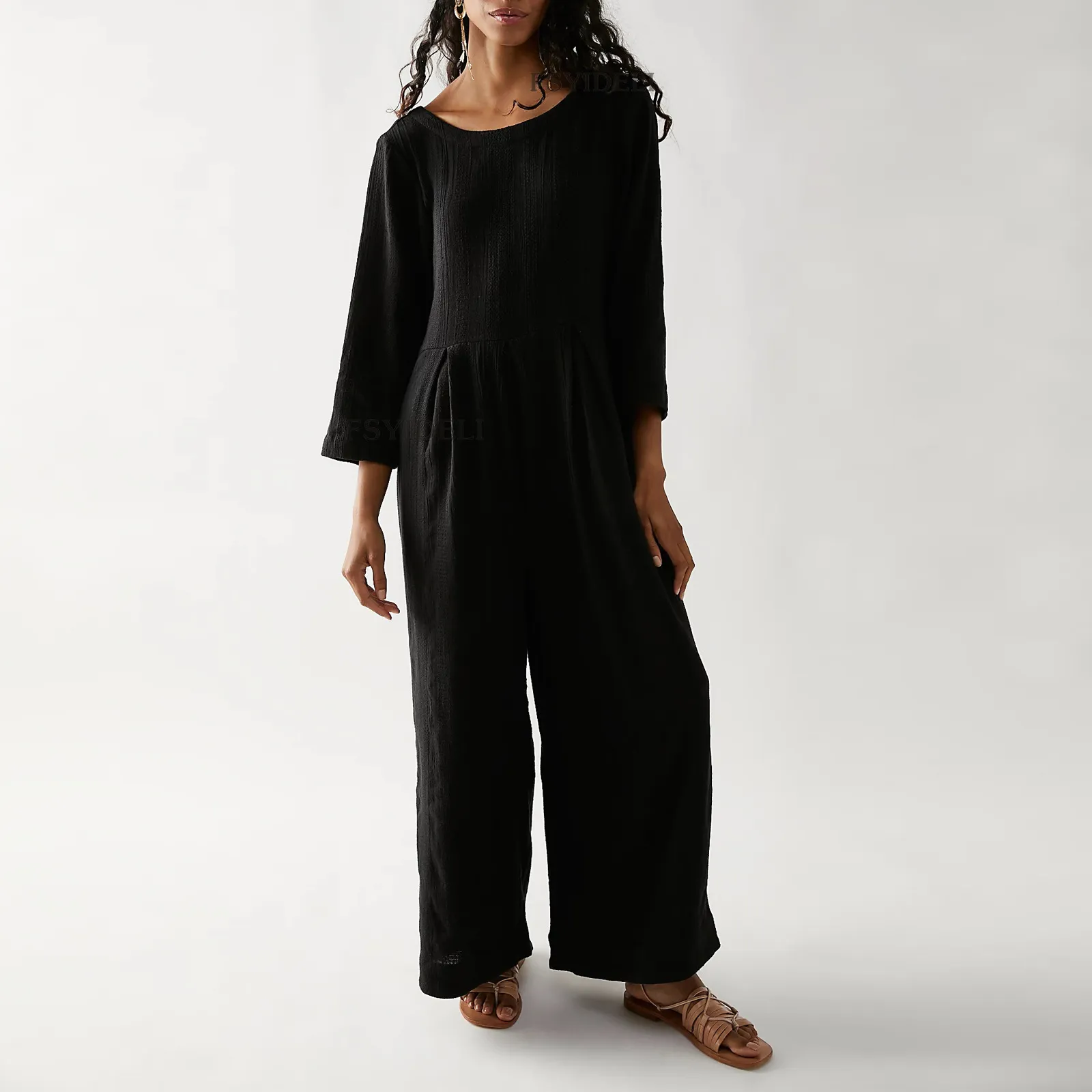 Long Sleeve One-piece Loose-fitting Wide-leg Trousers