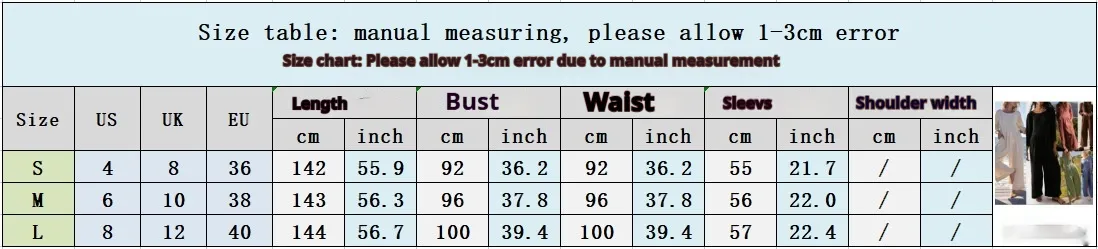 2-3cm differences due to manual measurement. 2. Please check the size chart carefully before you buy the item, if you don't know how to