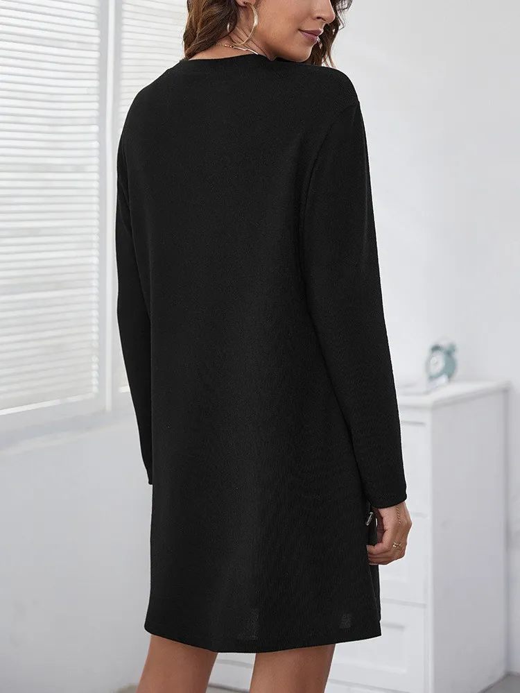Long-sleeved Round-neck Straight Dress Fashion Casual Loose Solid Color Dress For Women Fall Spring Clothing