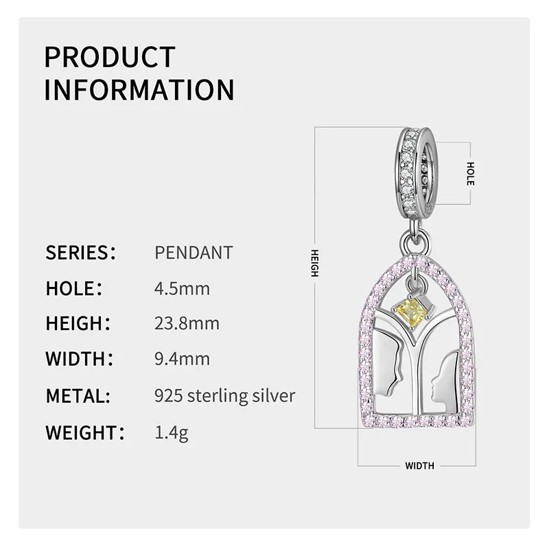 Looking At Each Other Affectionately S925 Sterling Silver Valentine's Day Pendant Necklace Bracelet Accessories Pendant