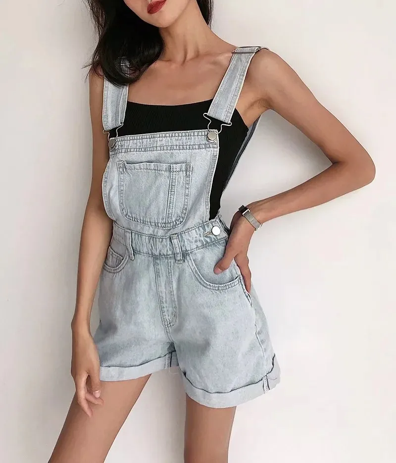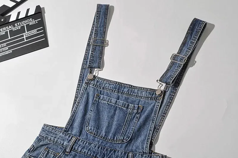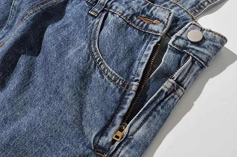Loose-fitting Curl All-matching Jeans Suspender Pants
