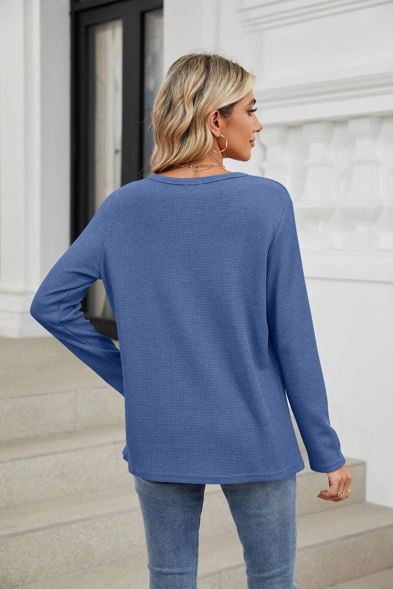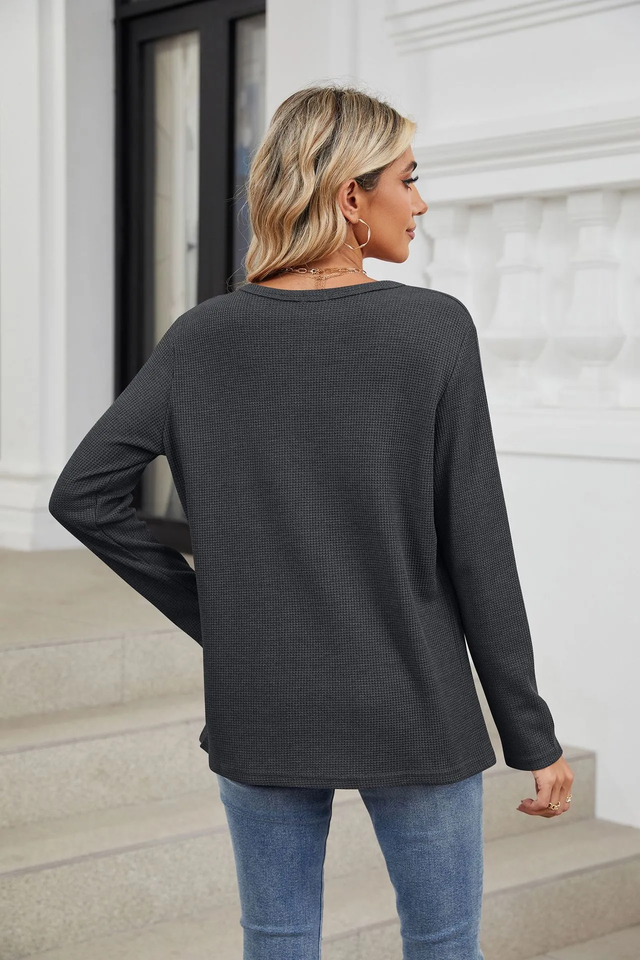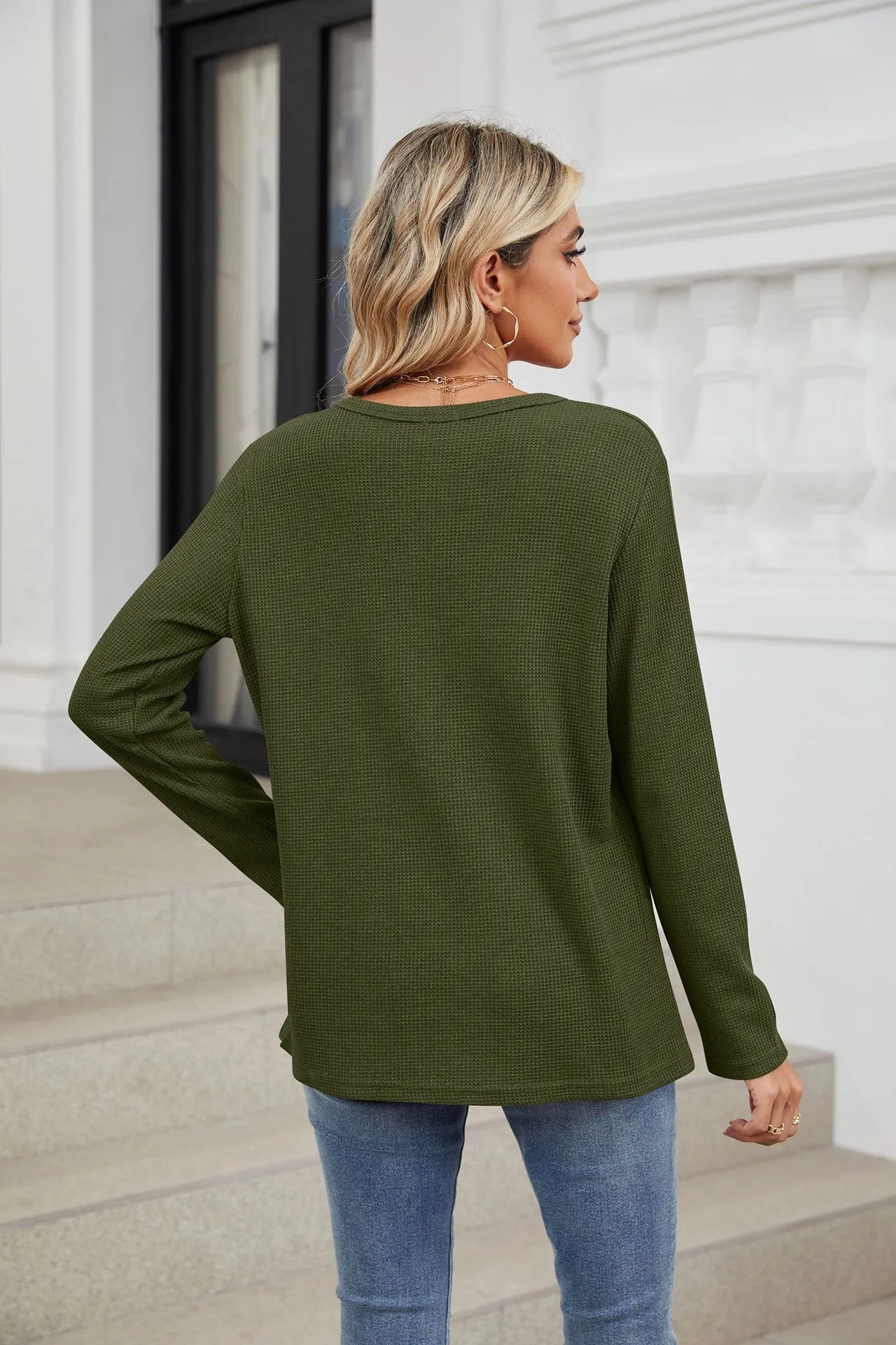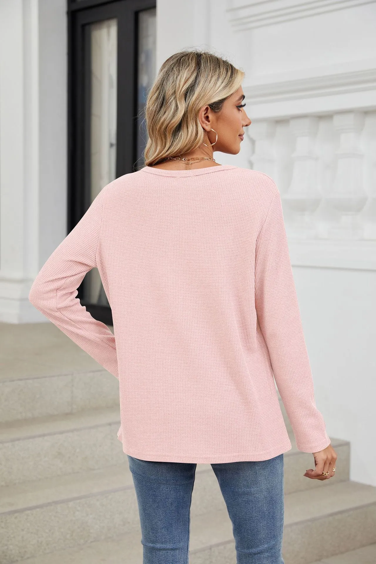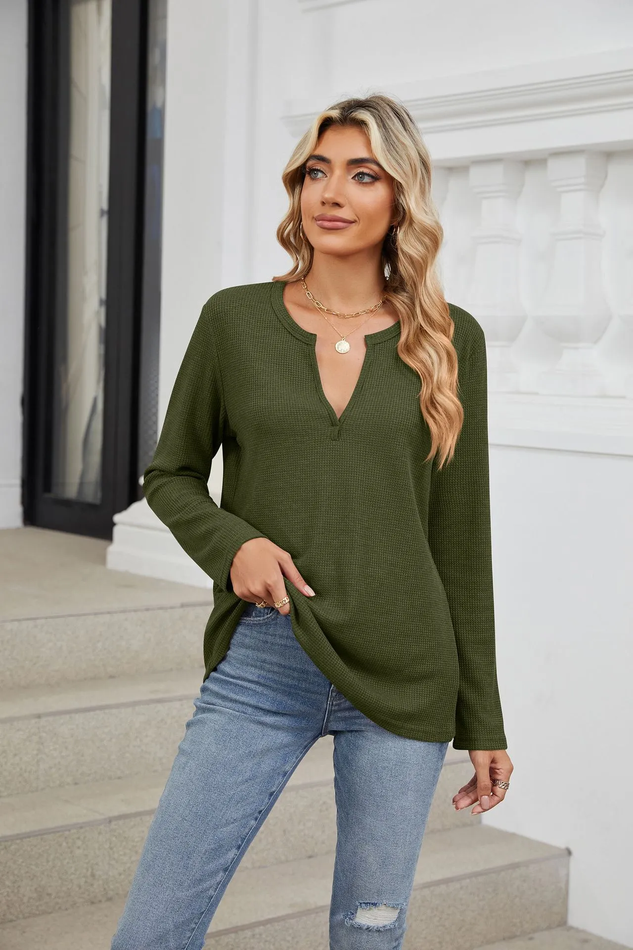 Loose-fitting V-neck Long Sleeves T-shirt