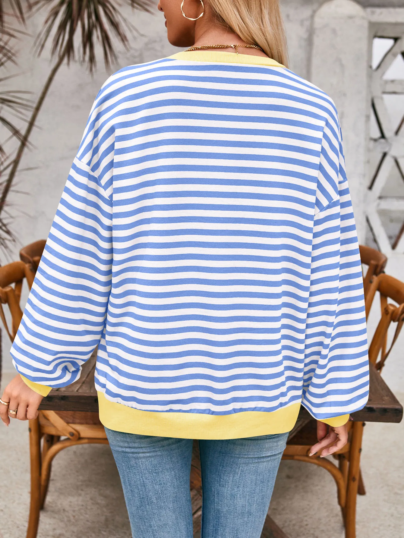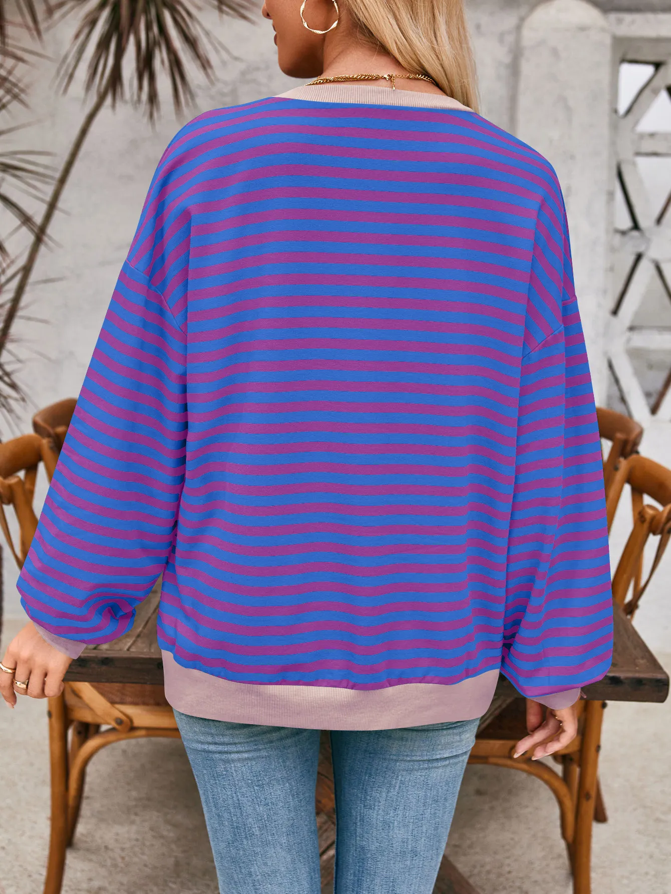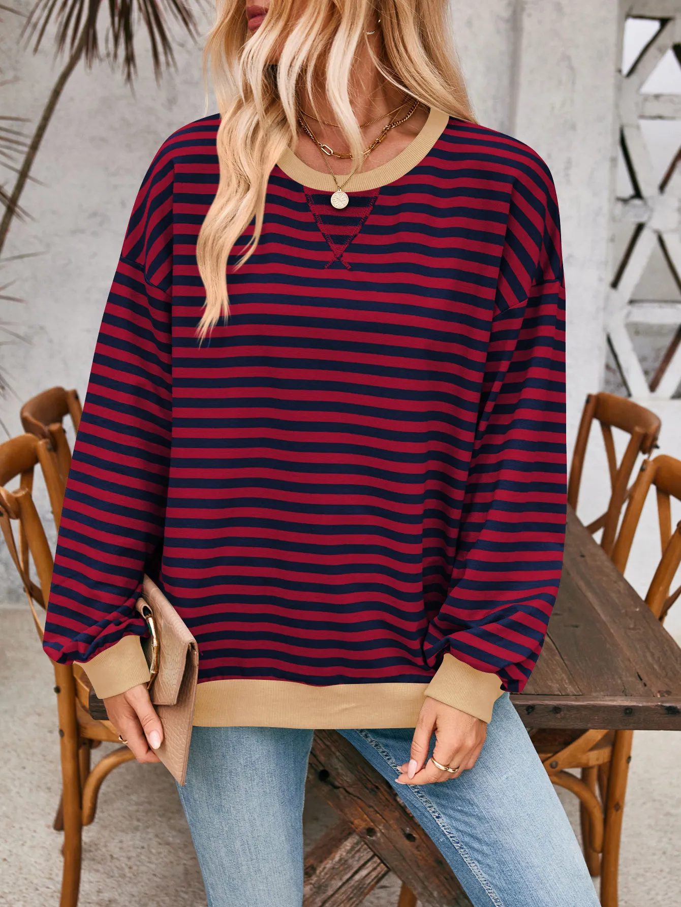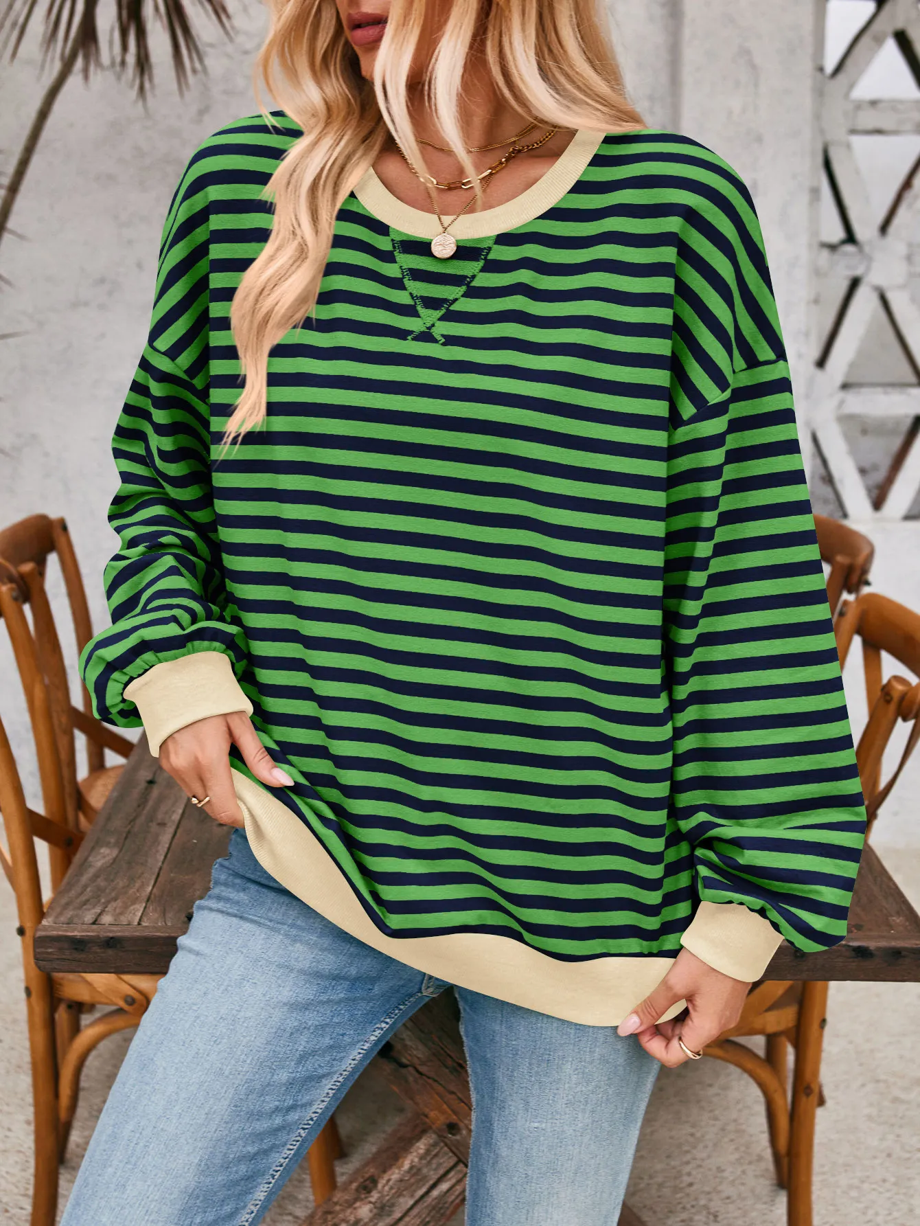Loose Striped Long Sleeve T-shirt Casual Pullover Sweater For Womens Clothing