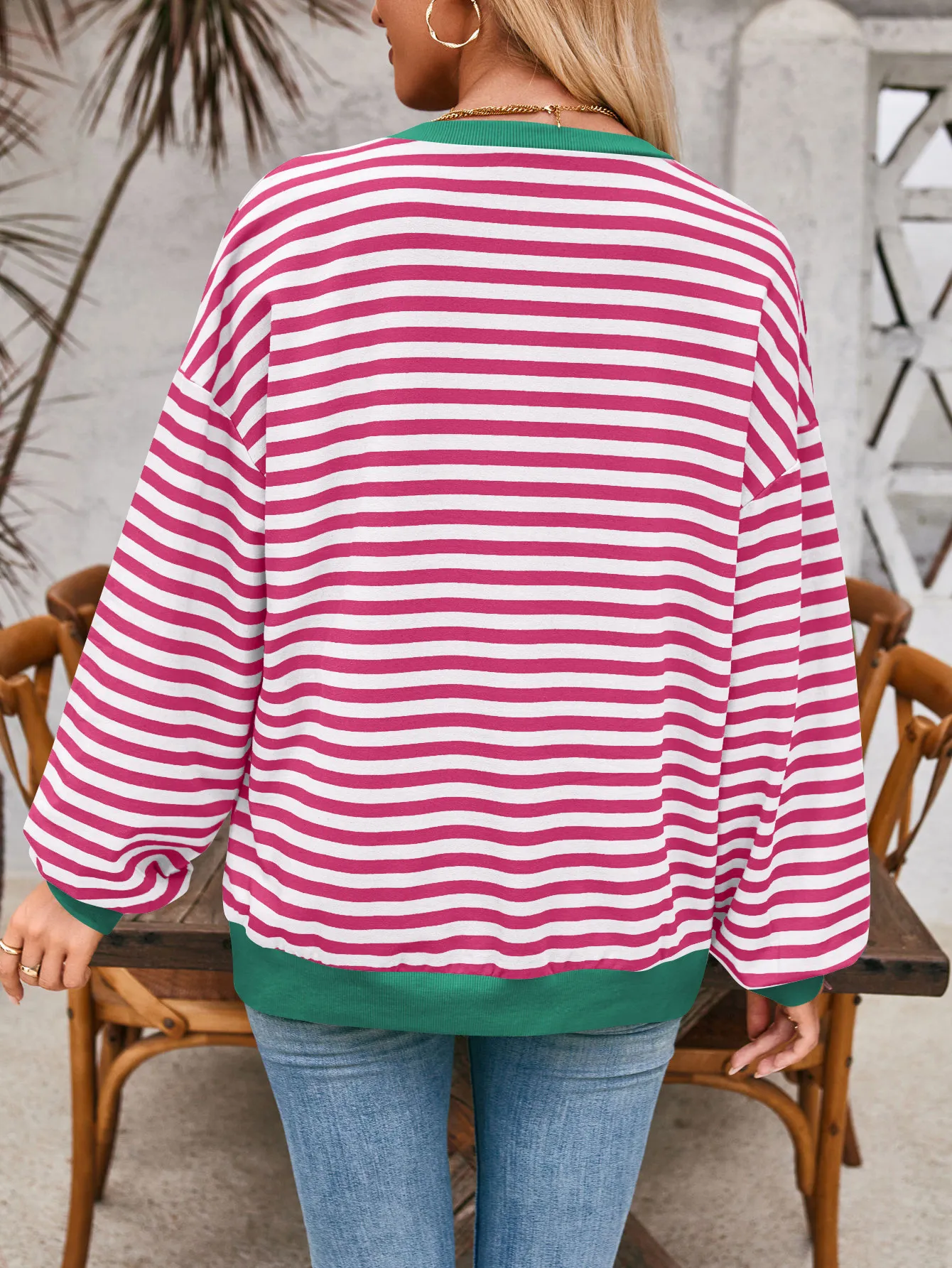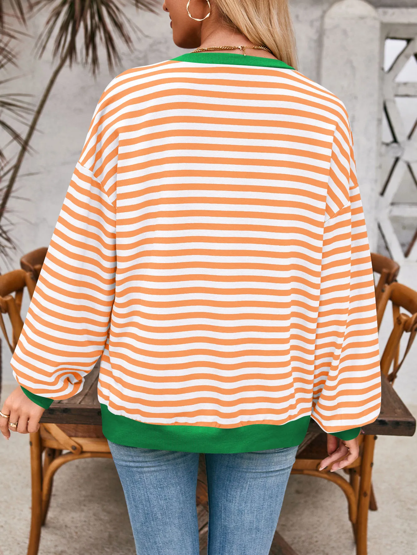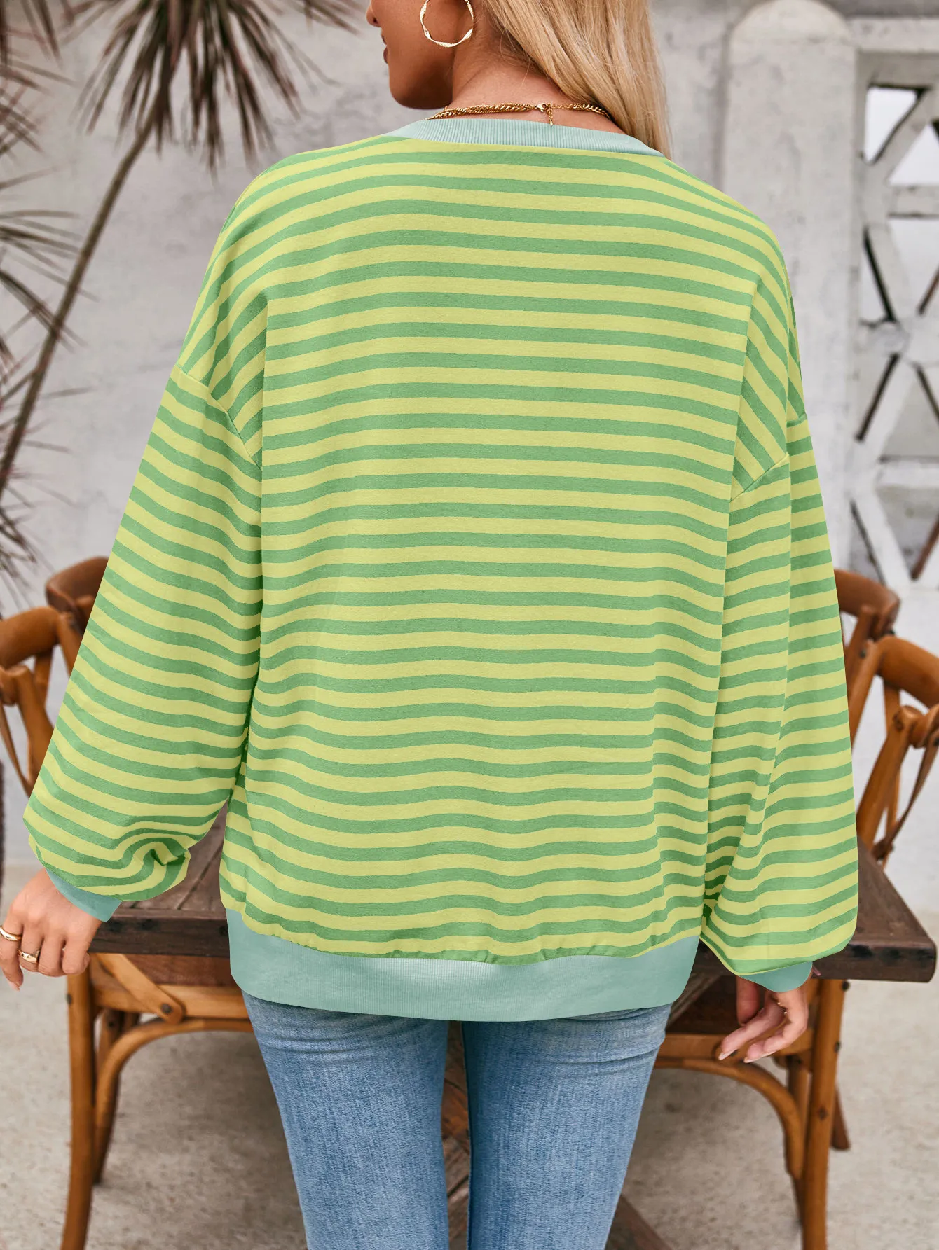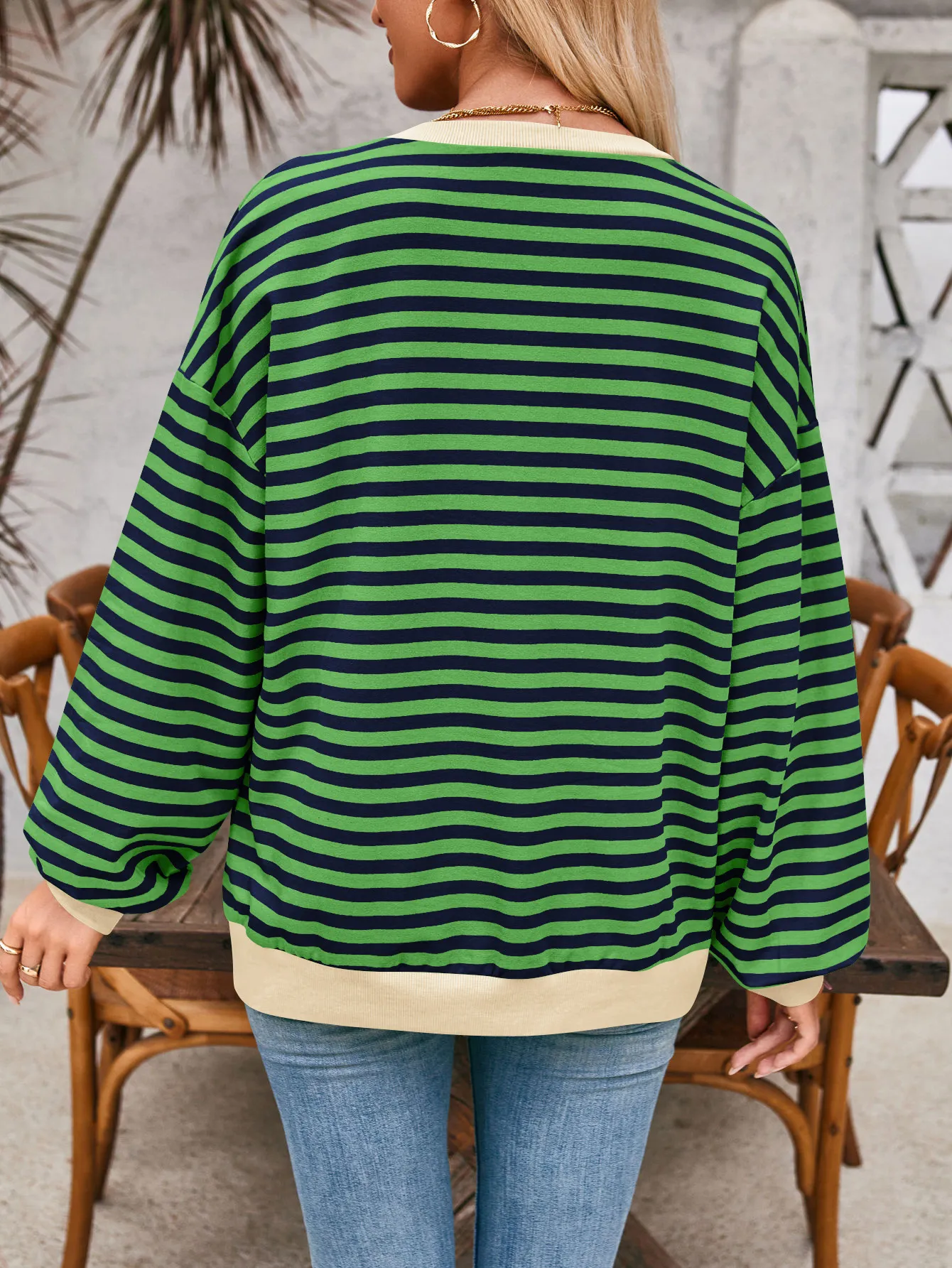 Loose Striped Long Sleeve T-shirt Casual Pullover Sweater For Womens Clothing