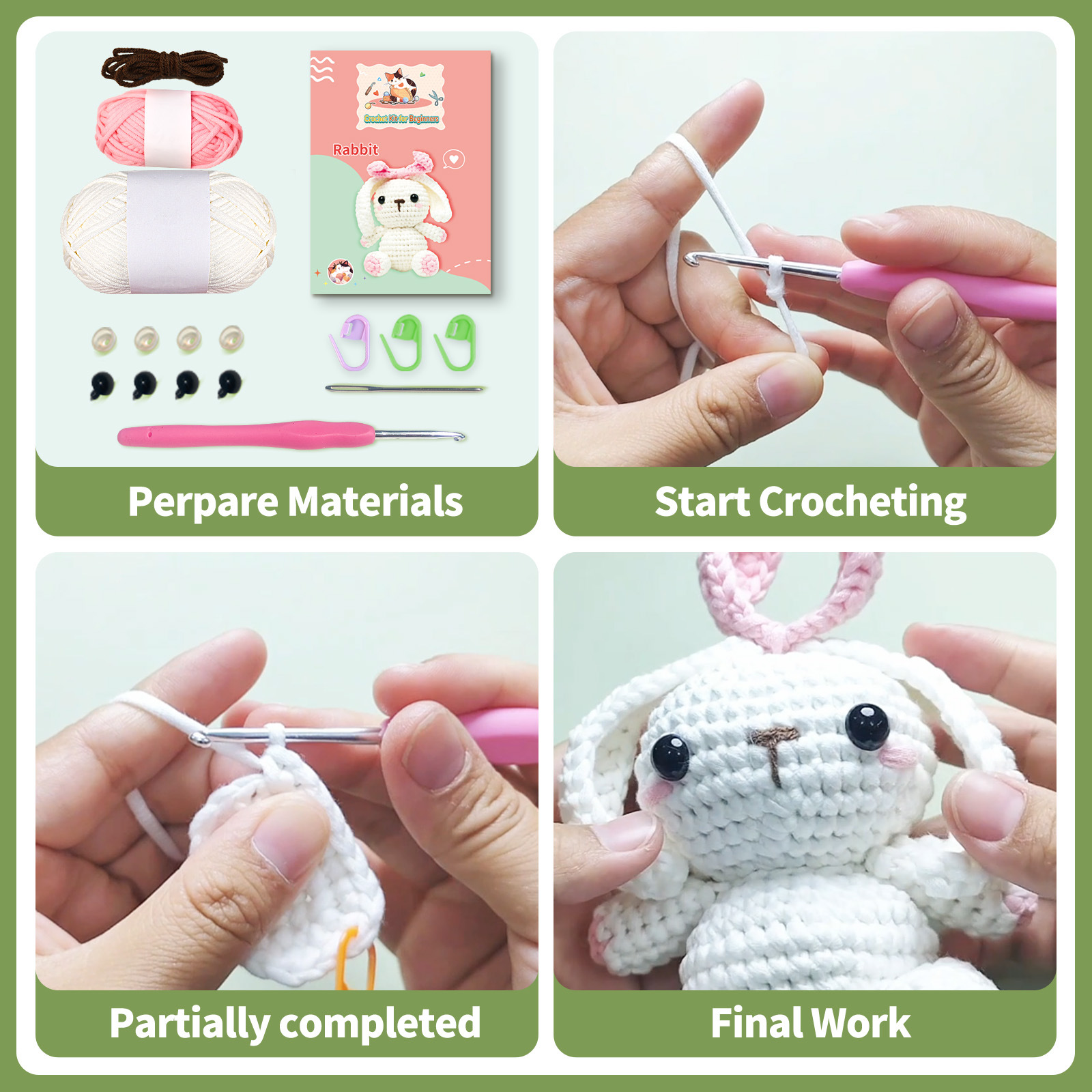- Complete DIY Kit: Includes everything you need to crochet a cute lop-eared rabbit.