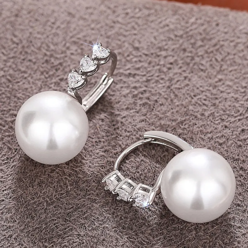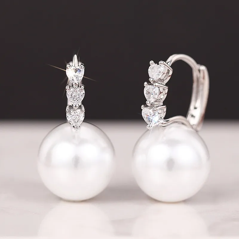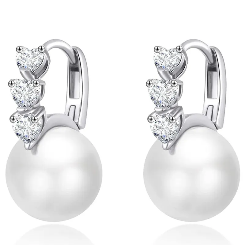 Love Women's Imitation Pearl Inlaid Zircon Earrings