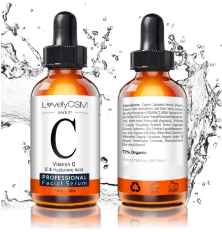 LovelyCSM Vitamin C Serum with Hyaluronic Acid. Brightens, hydrates, and reduces dark spots and wrinkles for a youthful, glowing complexion.