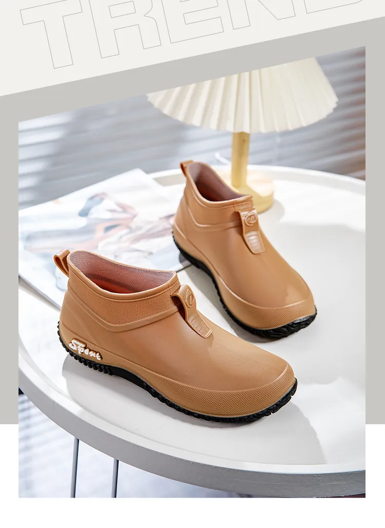 Made from premium waterproof material, these boots keep your feet dry in heavy rain, muddy paths, and shallow streams. Their low-top design provides lightweight flexibility, making them easy to wear for extended periods without the bulk of traditional high rain boots.