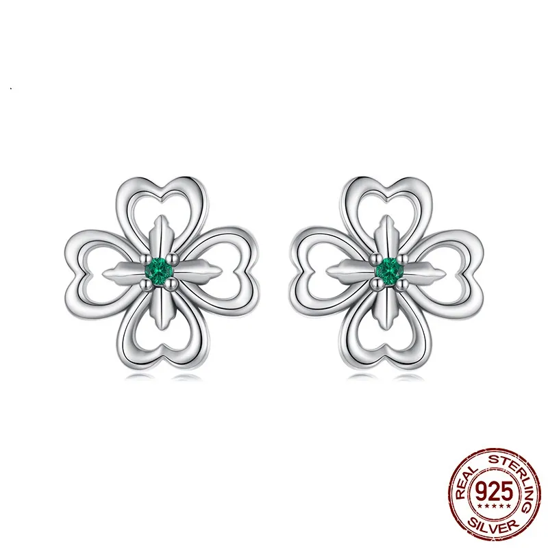 Lucky Four-Leaf Clover Stud Earrings Sterling Silver Plant