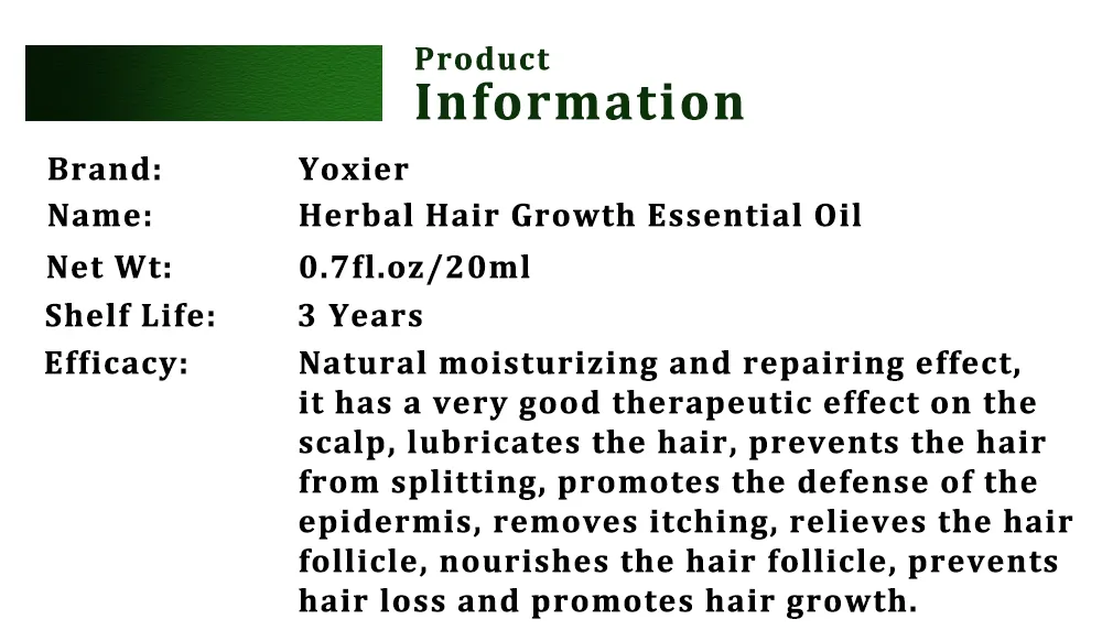Yoxier Herbal Hair Growth Essential Oil promotes healthy hair growth by nourishing hair follicles and preventing hair loss. Strengthens and