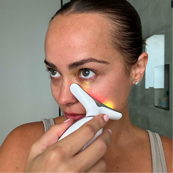 Gently glide the LUMINESCE Facial Sculptor across your skin, letting the light and massage work their magic. Congrats! You're on the way to joining our 120,000+ Happy Customers