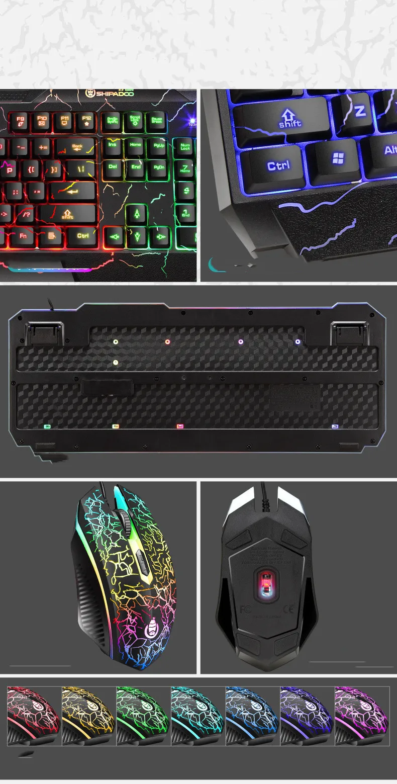 Paired with a high-DPI luminous gaming mouse, you get adjustable sensitivity up to 7200 DPI, ideal for fast-paced reactions and precise targeting. Ergonomically designed to fit comfortably in your hand, the mouse also features vibrant RGB lighting effects and smooth tracking across any surface.