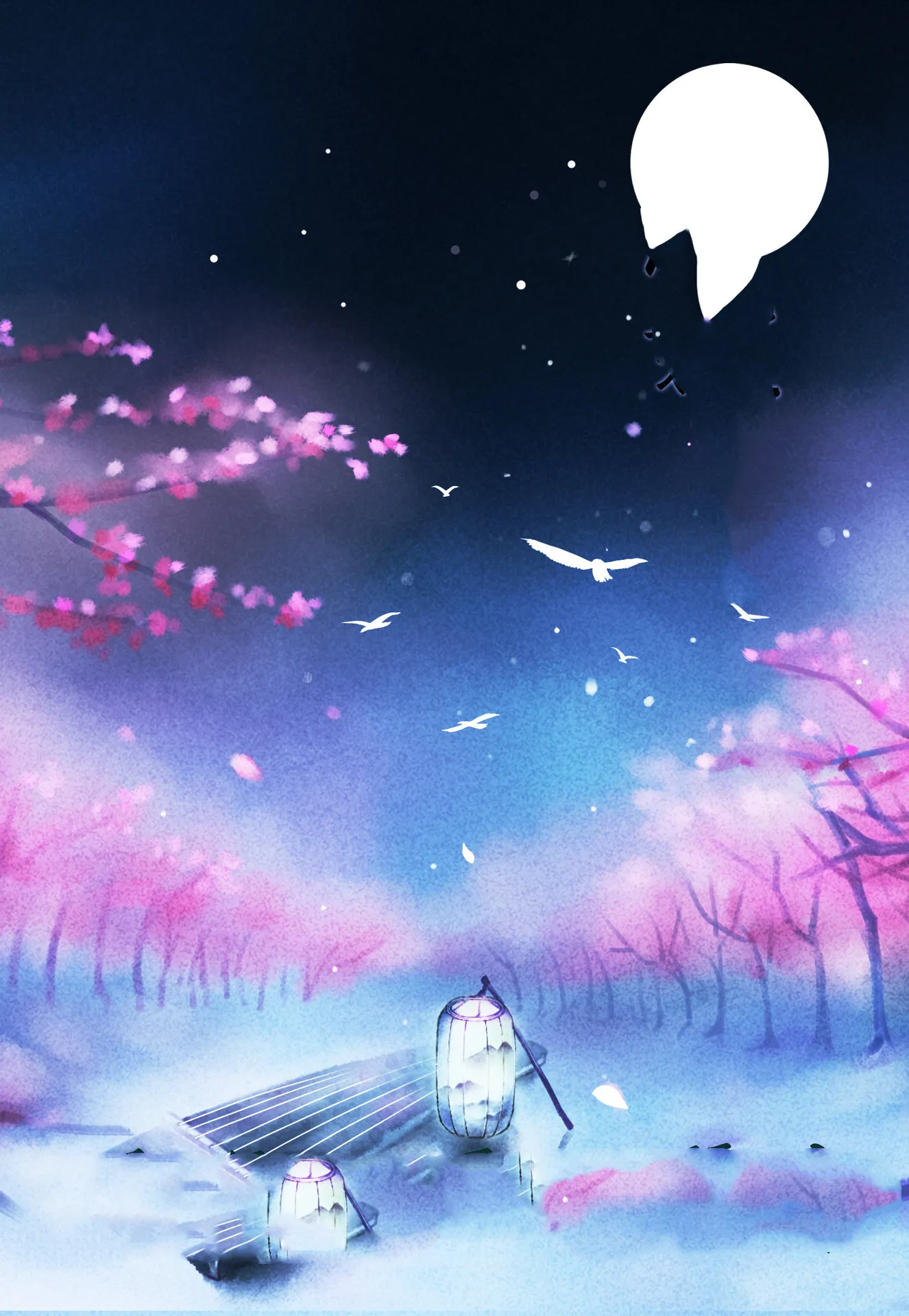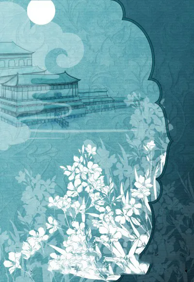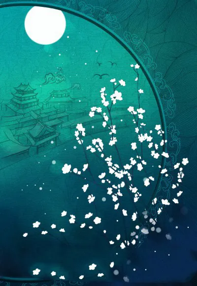 music under the moon, green pavilion shadow, bright moon shines on Qingcheng