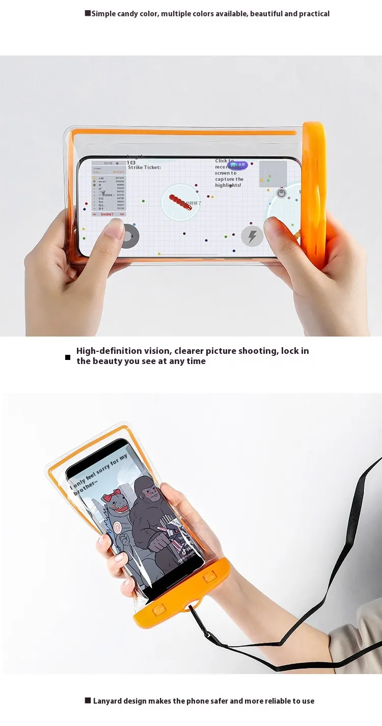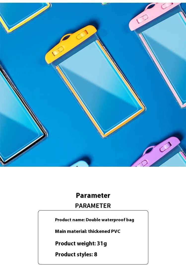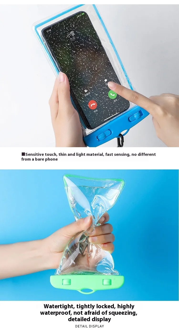 Made from high-quality, flexible PVC material, this waterproof phone bag is durable, lightweight, and easy to carry. The secure sealing mechanism keeps water out, and the adjustable strap allows for comfortable wearing around your neck or shoulder. Its compact design fits most smartphones, making it ideal for a wide range of devices.
