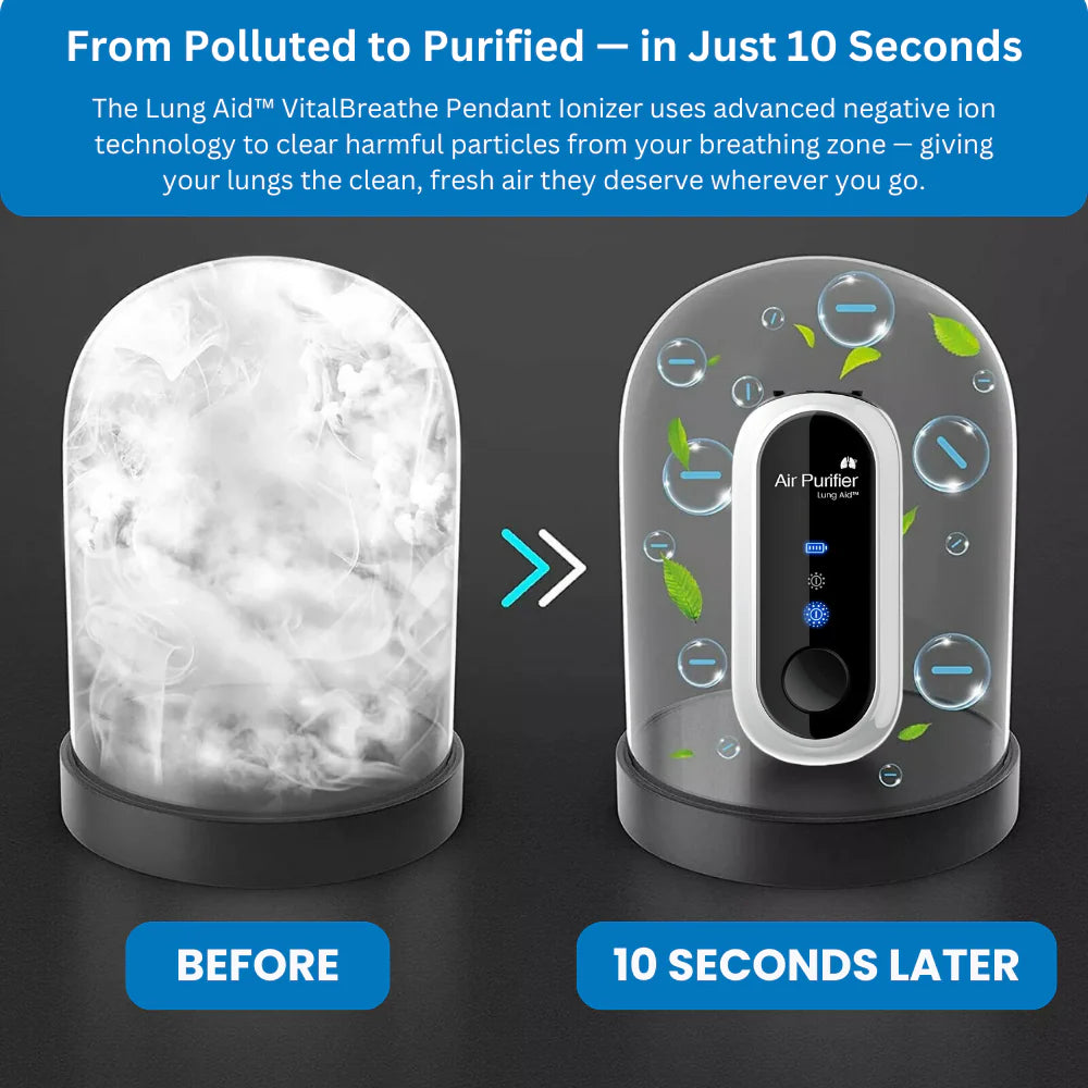 While large air purifiers can be effective in homes and offices, we spend hours in cars, public spaces, and workplaces where traditional devices aren’t practical. That’s why personal wearable purifiers like Lung Aid™ VitalBreathe Ionizer are becoming essential. They create a protective zone of fresher air right around you—whenever and wherever you need it.
