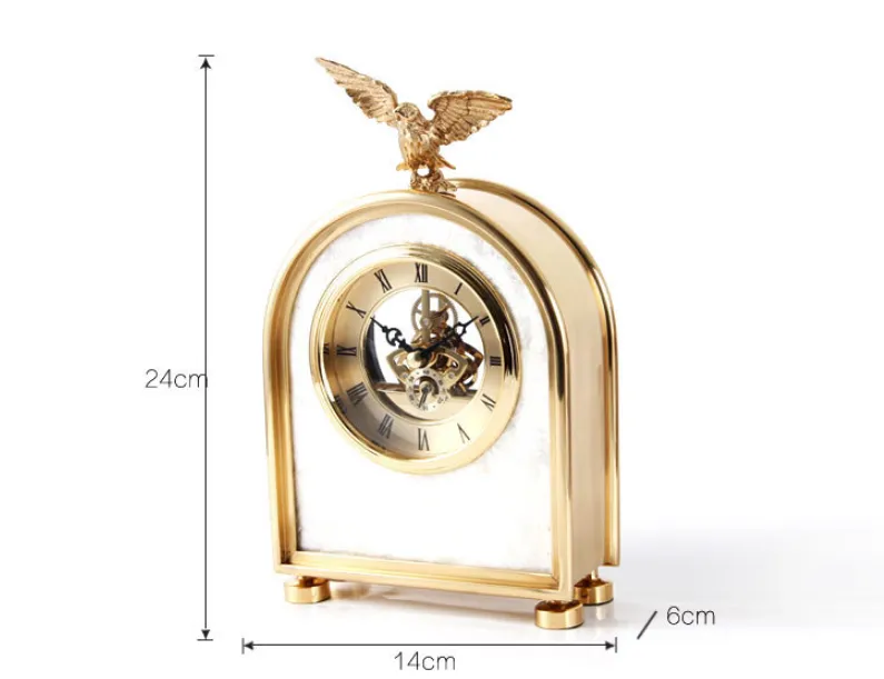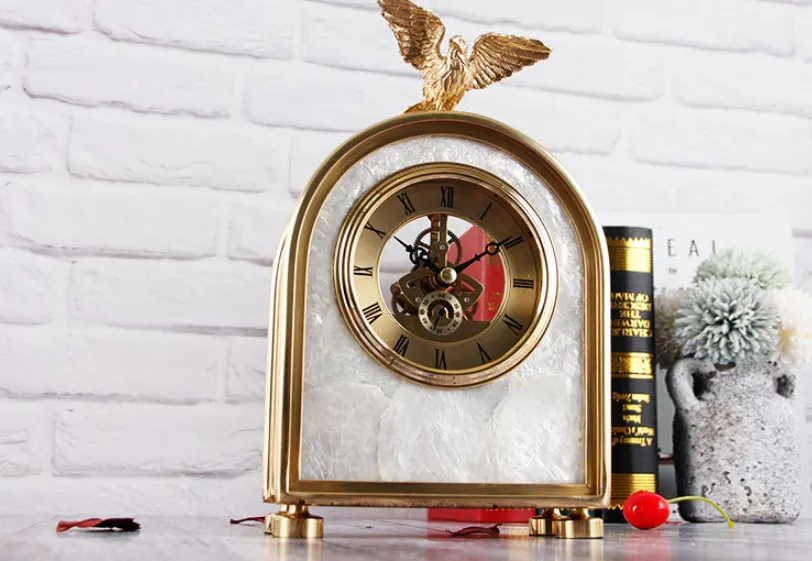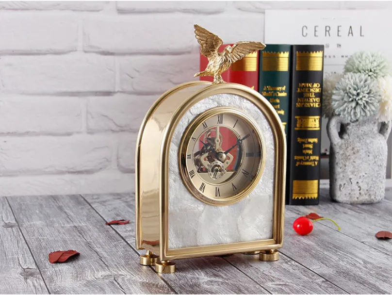 Luxury Decoration Pure Copper Table Clock Living Room Home Accessories Shell Eagle Clock Ornaments Gift Ornaments