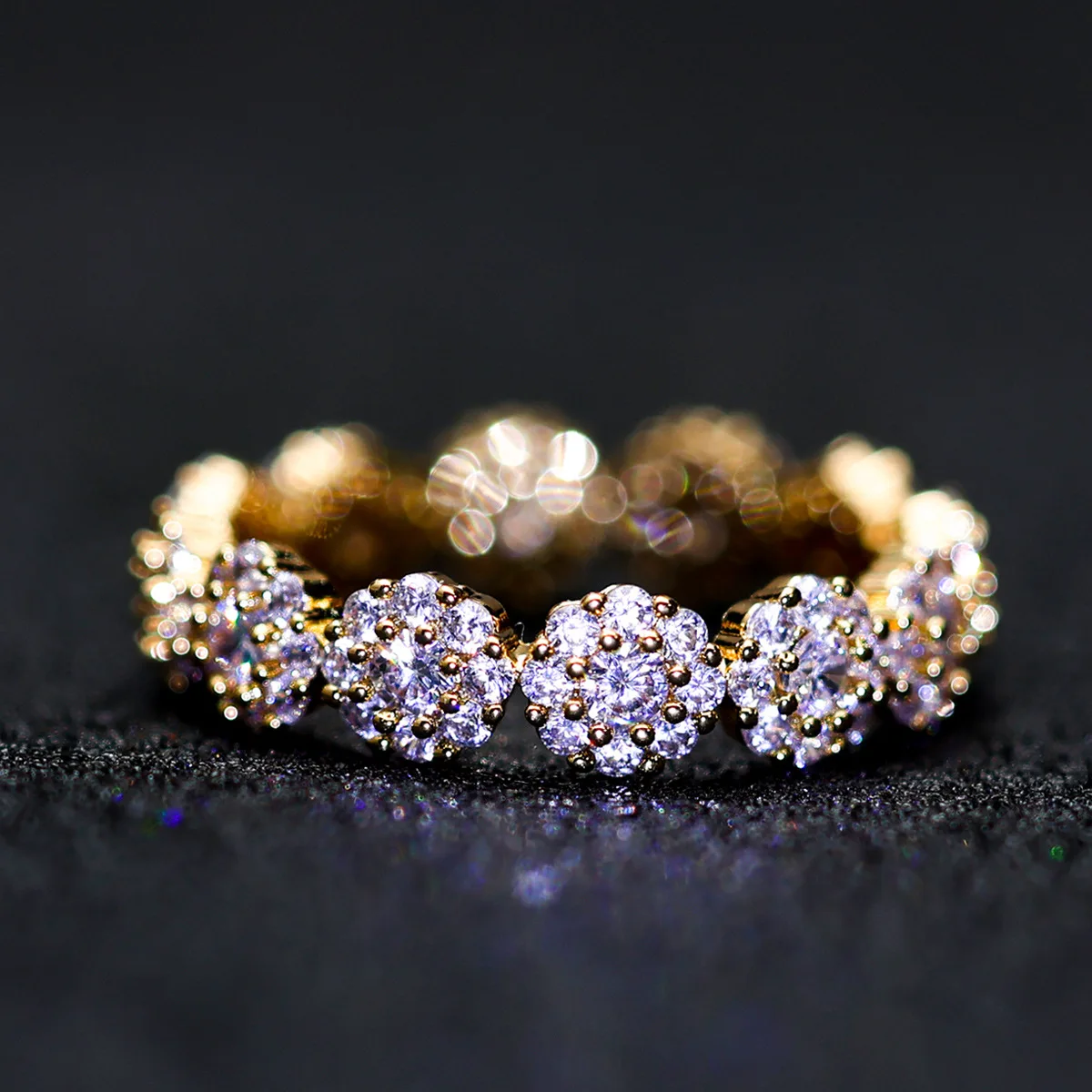The dazzling white zircon stones mimic the brilliance of diamonds at a fraction of the cost, adding radiant charm to your hand and making the ring a true eye-catcher.