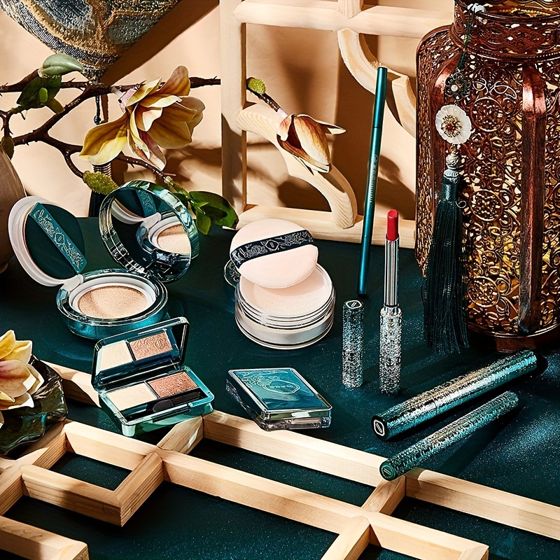 From the ornate packaging to the coordinated color palette, this set elevates any vanity or makeup routine with a refined, luxurious feel.